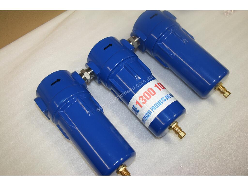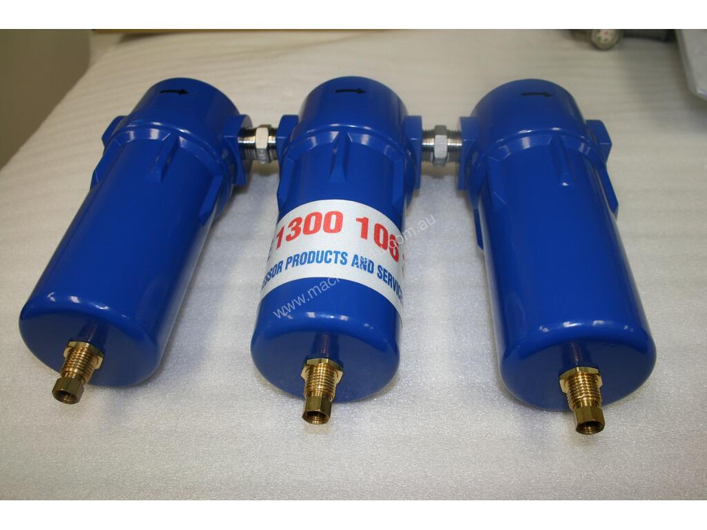 This set consists of three coalescing oil removal filters coupled together to make a super effective oil removal system.  The set consists of one 1 x micron pre-filter, one x 0.01 micron sub-micron filter and one x activated carbon odour removal filter.