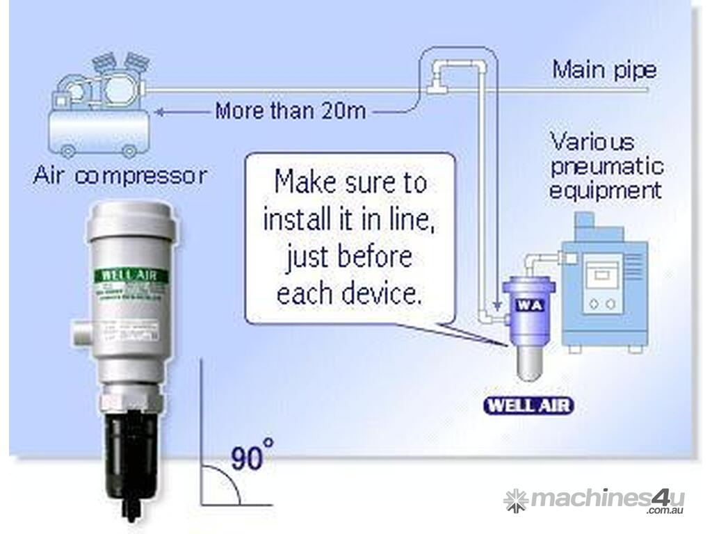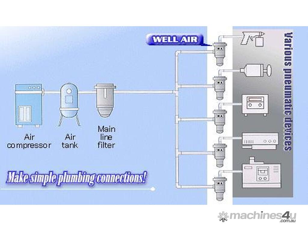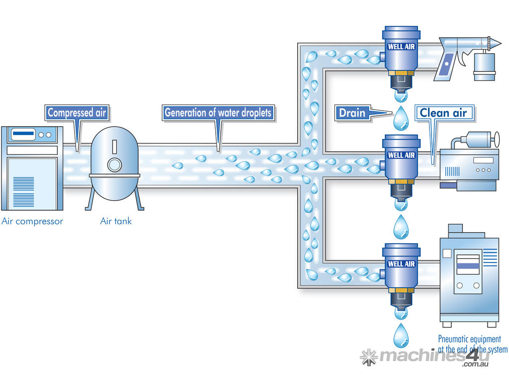 WELL AIR has been designed to remove all moisture, dirt and oil from your compressed air line to protect your machinery and equipment from becoming contaminated.