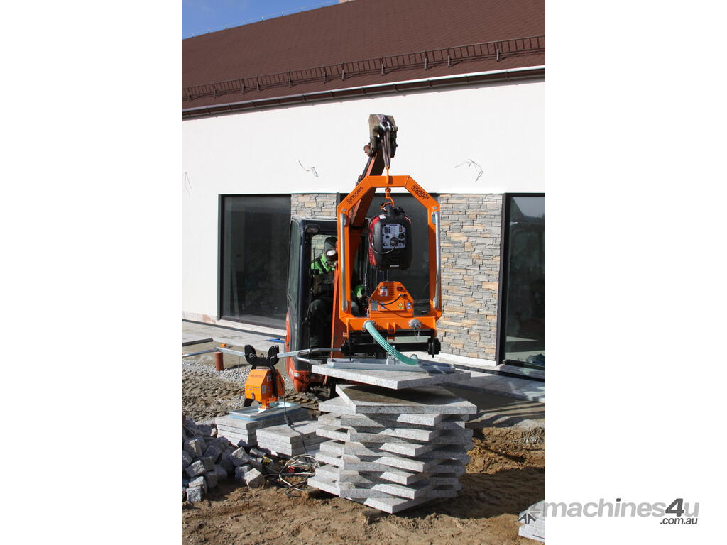 The FROG 600 MINI is a compact, high-performance vacuum gripper designed for the precise lifting and installation of medium-weight concrete, stone and precast elements. With a 600 kg lifting capacity, it is ideal for paving, landscaping, roadwork, civil construction, and precast handling.