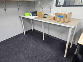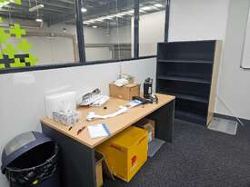 Consists Of 9x Office Desks Including Contents, 2x Tables, 9x Chairs, 1x4 Tier Shelf Including Contents. Please Note These Are On The Upper Level And You Will Require Extra Assistance To Remove. Inspection Highly Reccommended.