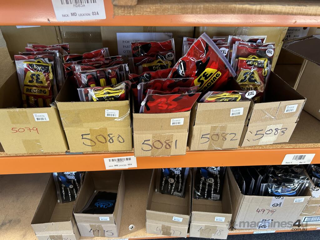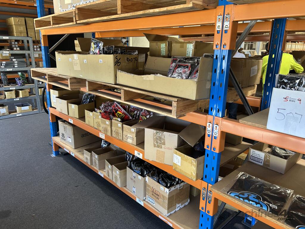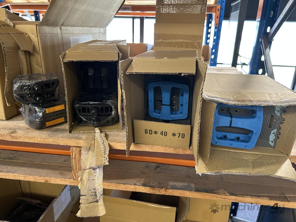 Contents Of Pallet Racking Bay – BMX Grips, Brake Levers, Brake Cables, Wheels, Cranks, Pedals, Tensioners And Gloves