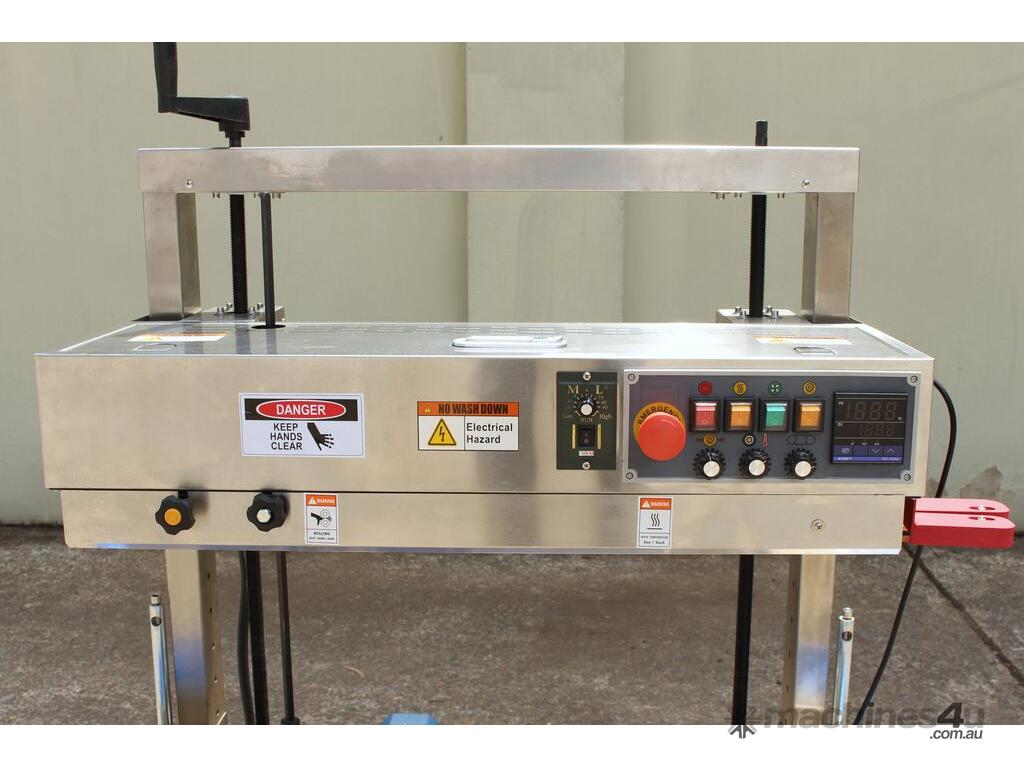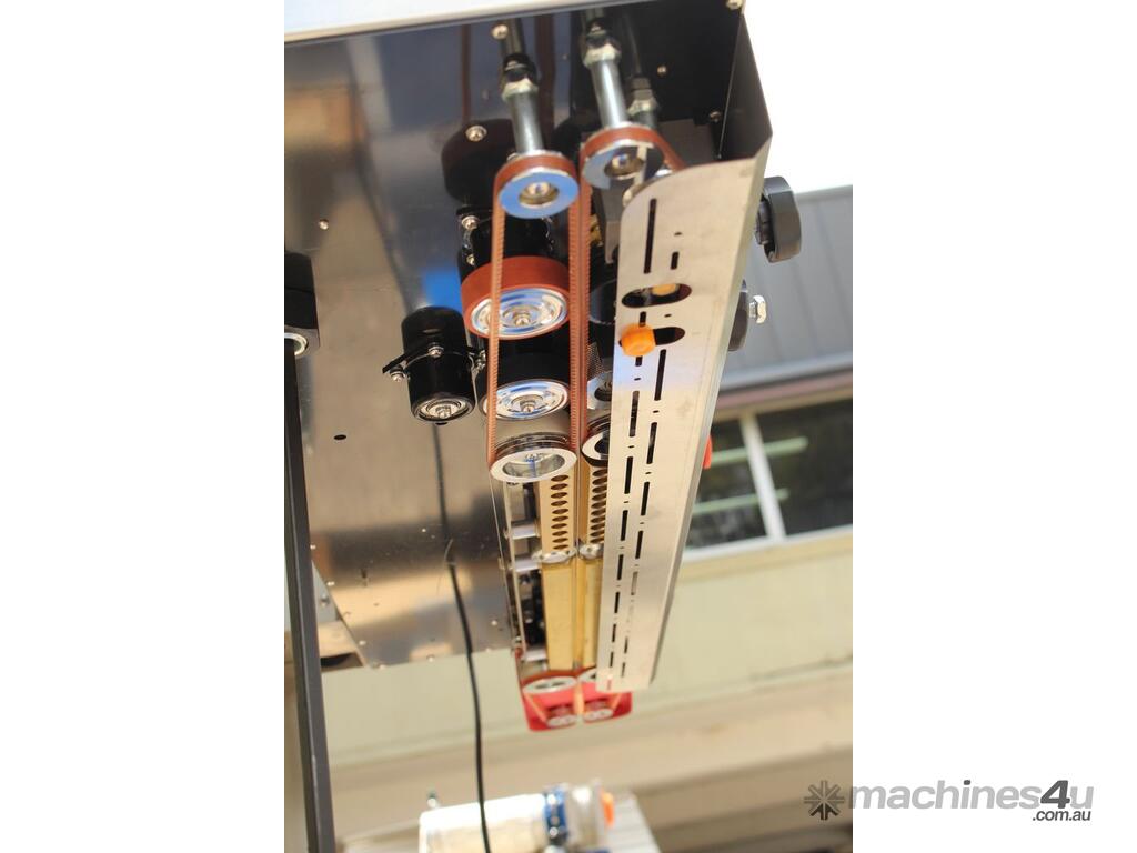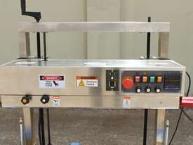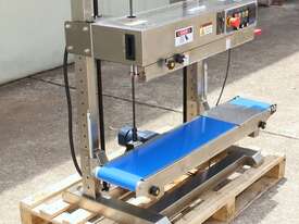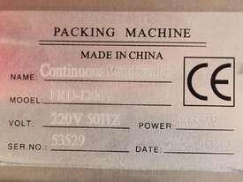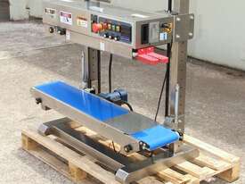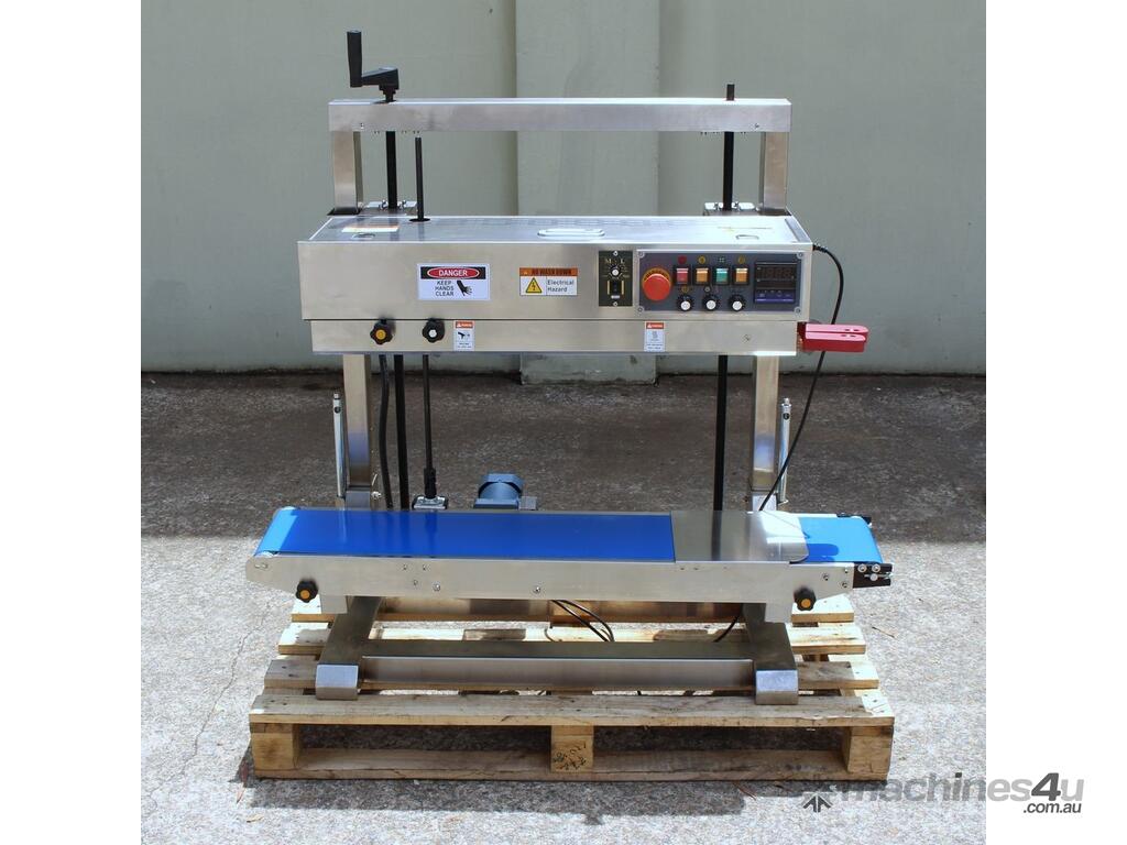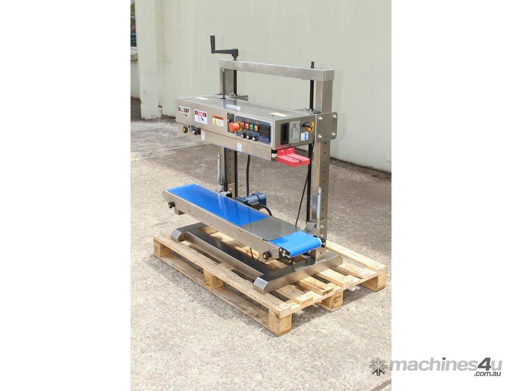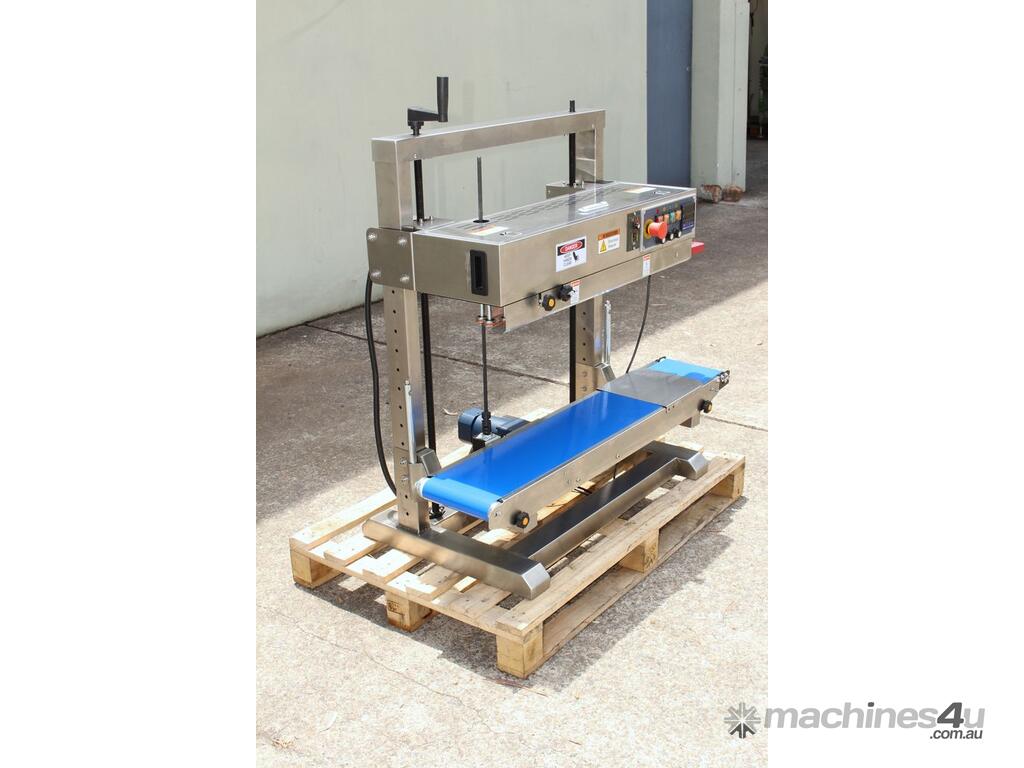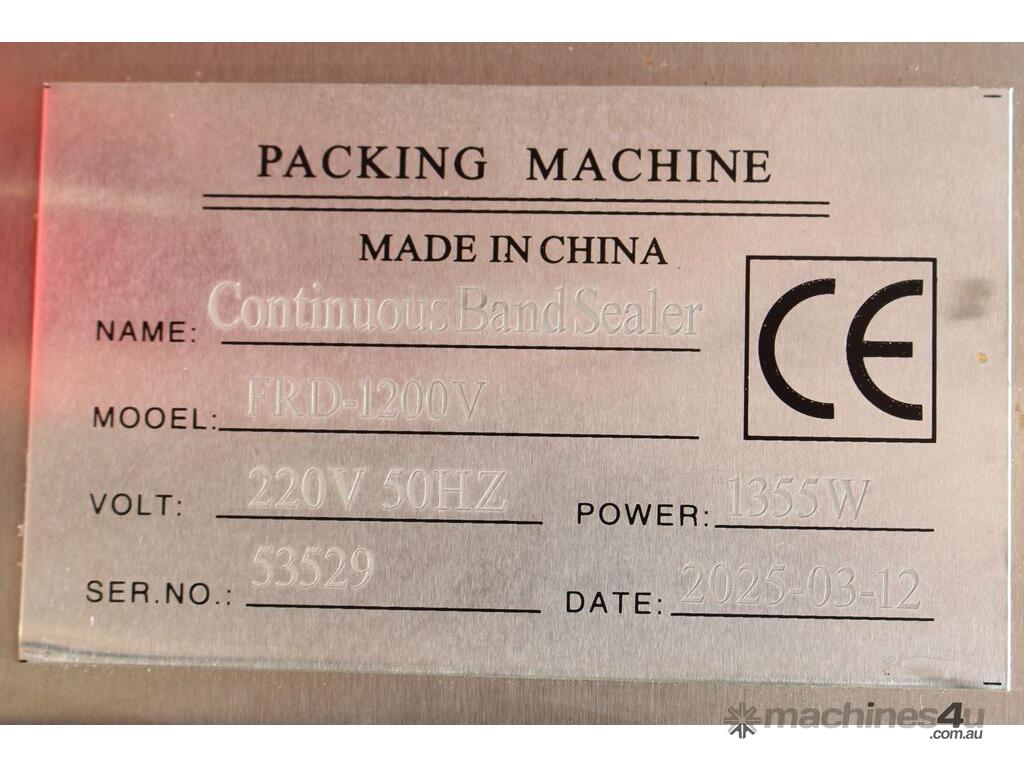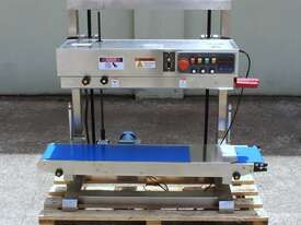 Continuous Band Sealer, Model FRD-1200V, vertical sealing design, adjustable sealing speed, temperature control, stainless steel construction, fully adjustable