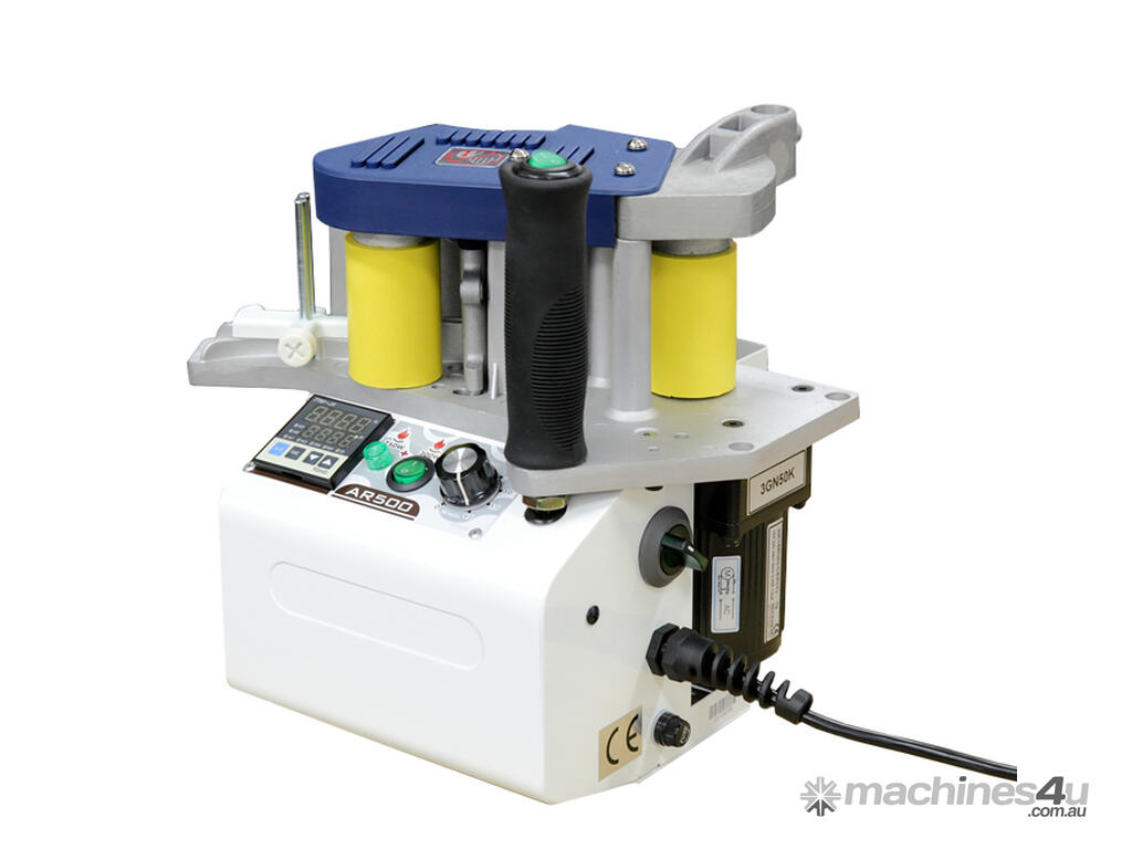 The original Co-Matic AR-500 Portable Edge Bander with variable temperature control and variable speed drive now available in a kit including motorized edge trimmer and end guillotine.