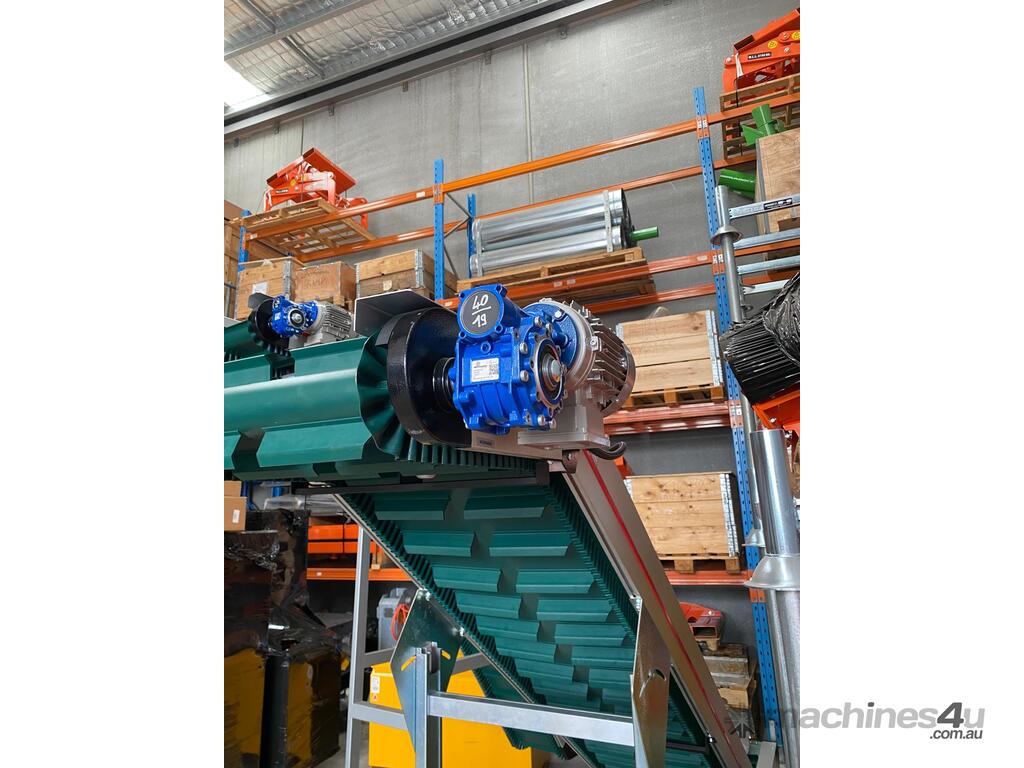 Brand new industrial conveyors, suitable for material handling and processing applications. Compact design and powered by reliable 3-phase motors.