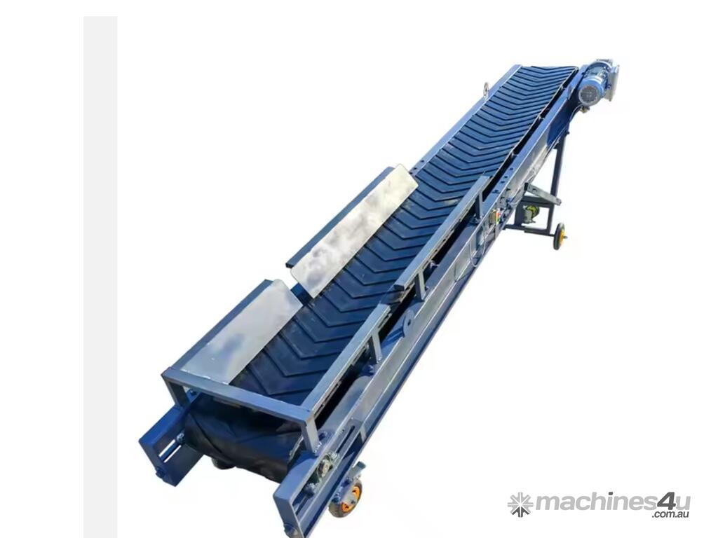 The conveyor, stacker is available in lengths from 4m to 20m, belt widths 600 to 1000mm, manual or hydraulic lift, troughed or flat belts, with or without chevrons, in fact can be customised to meet your requirements.