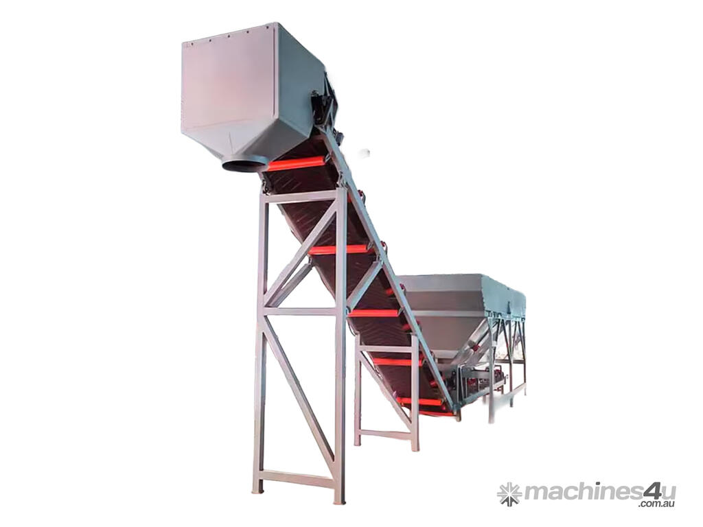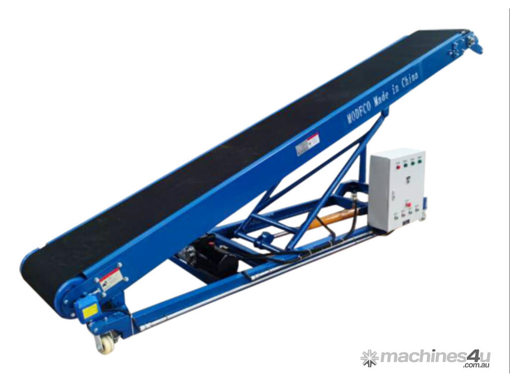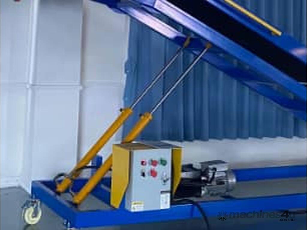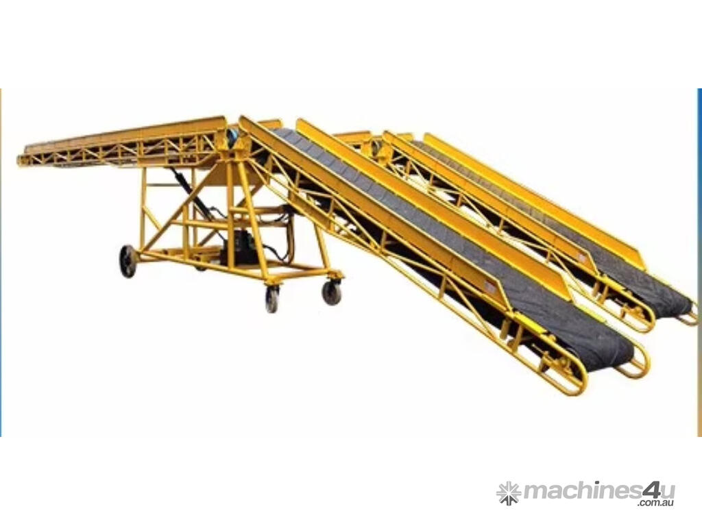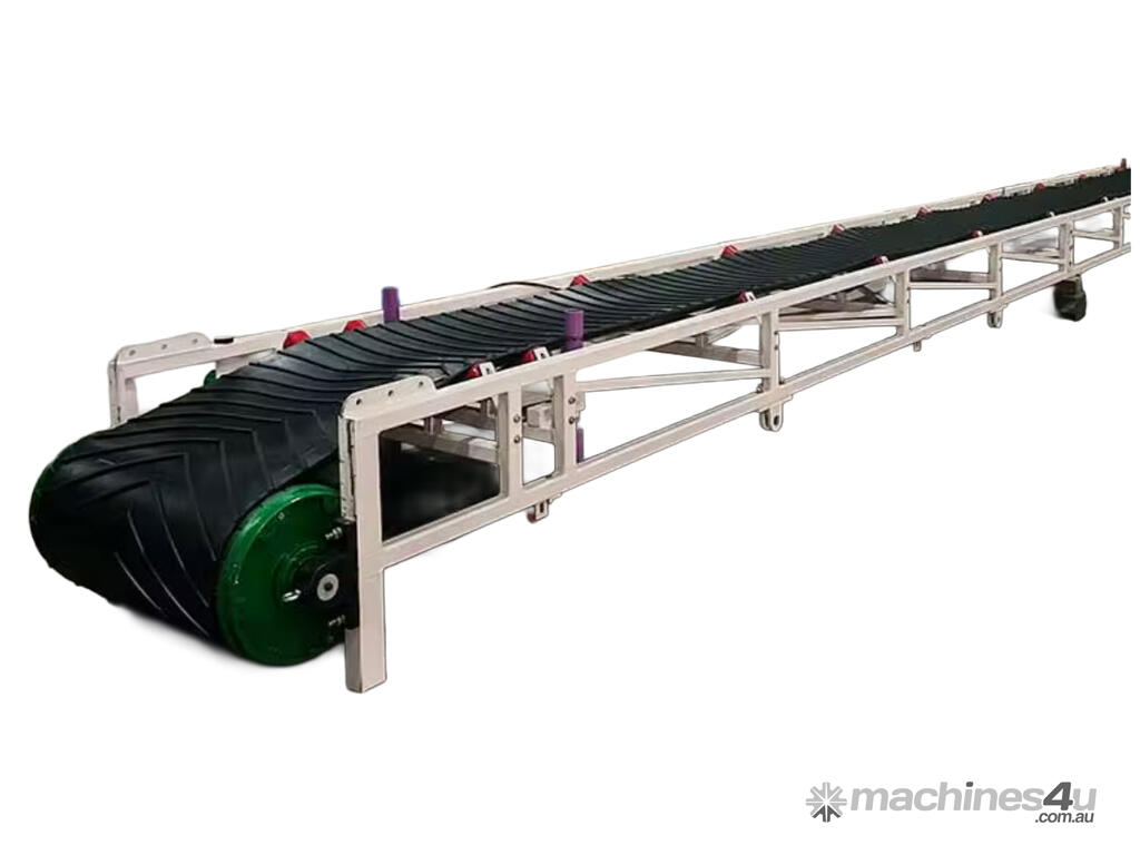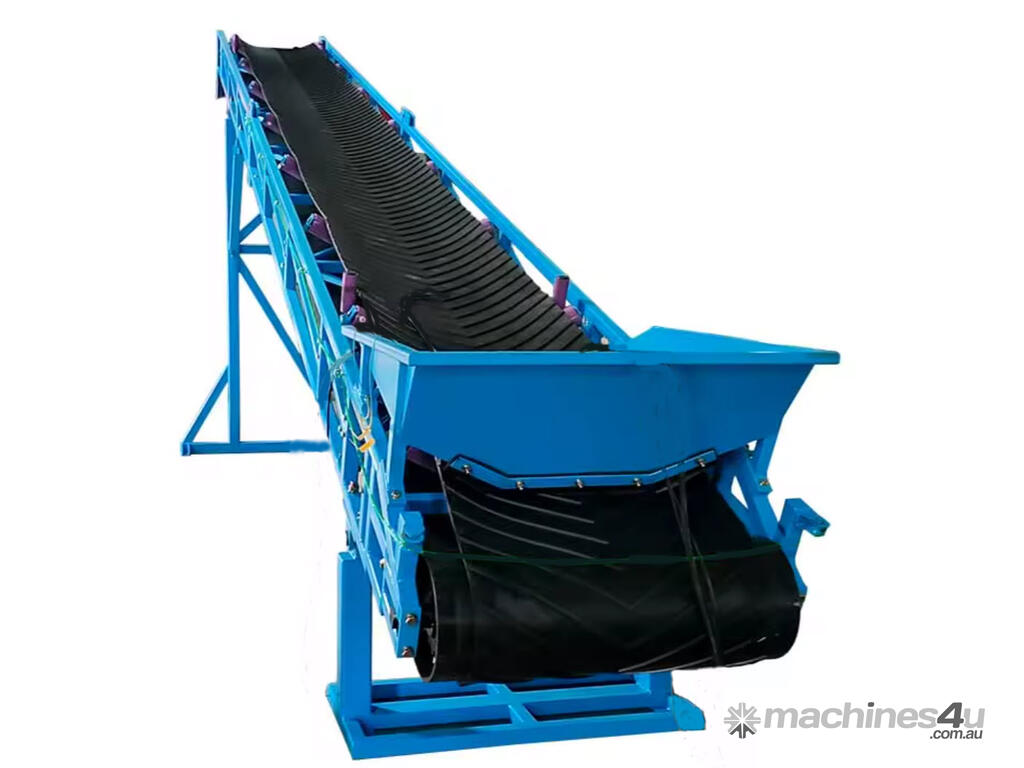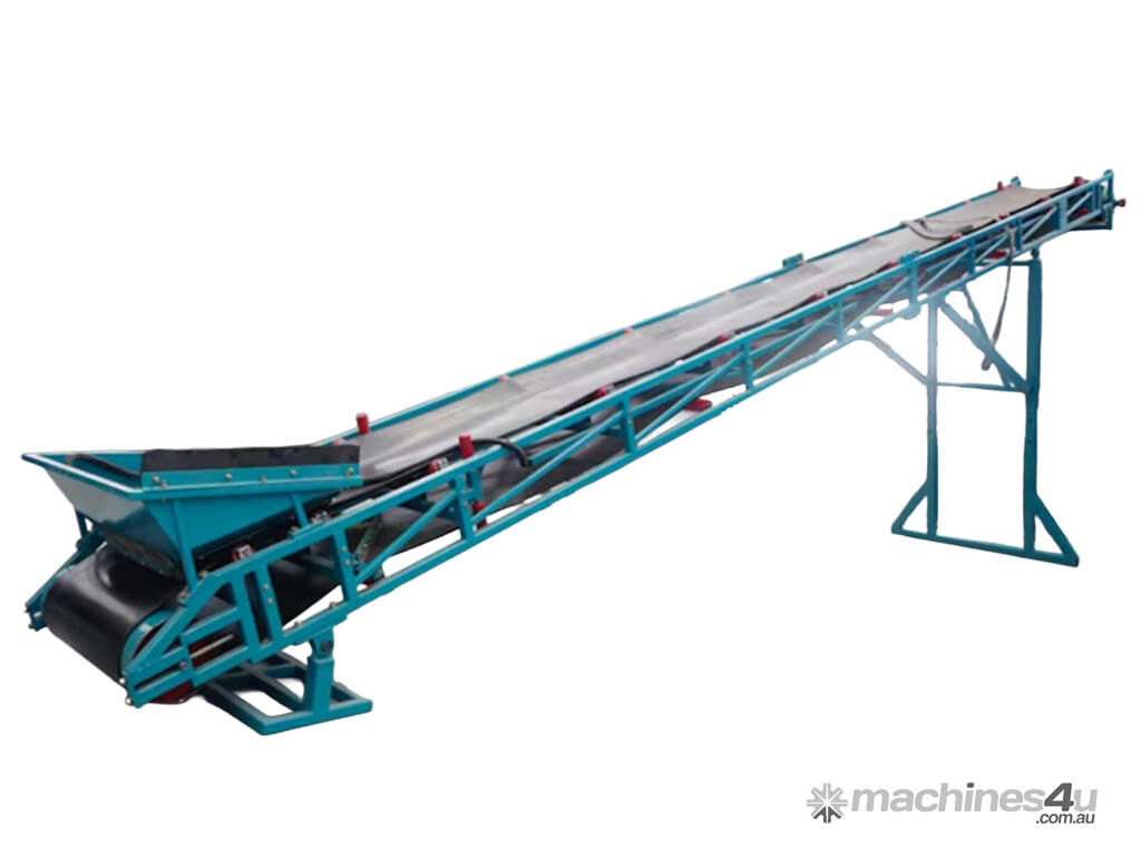 The conveyor, stacker is available in lengths from 4m to 20m, belt widths 600 to 1000mm, manual or hydraulic lift, troughed or flat belts, with or without chevrons, in fact can be customised to meet your requirements.