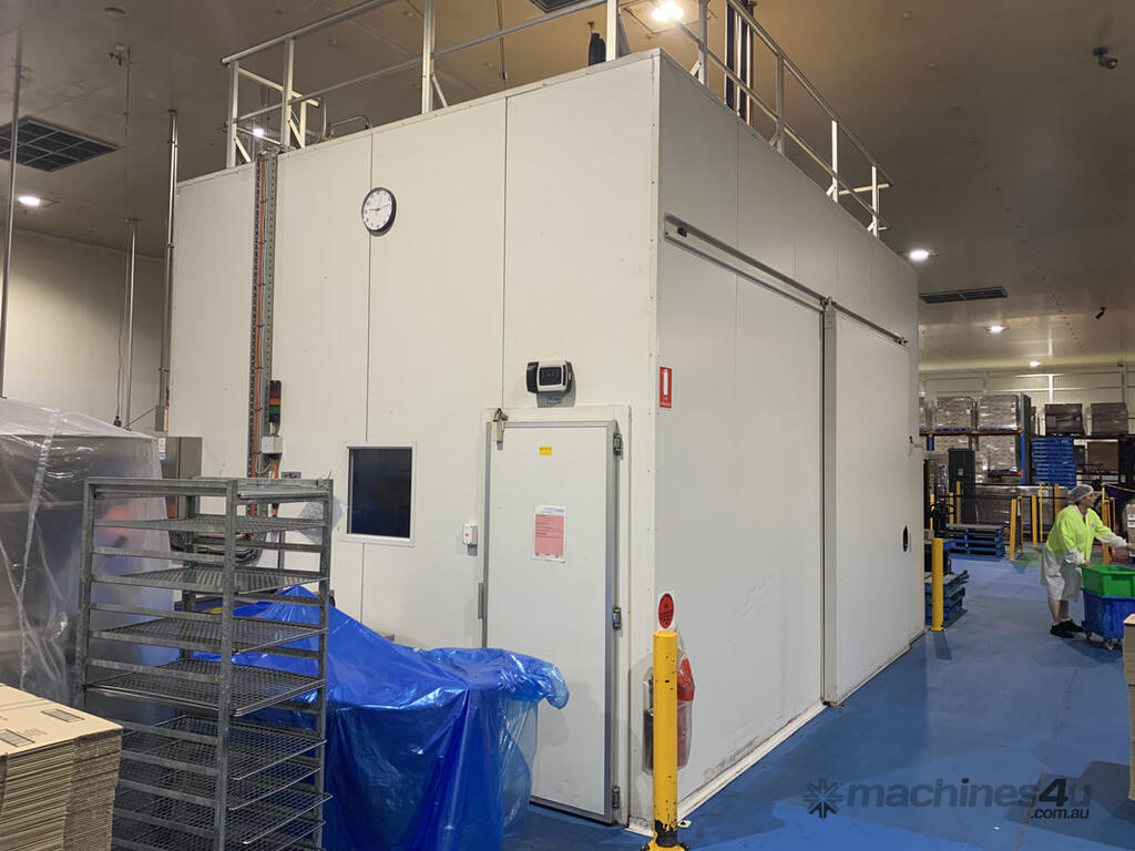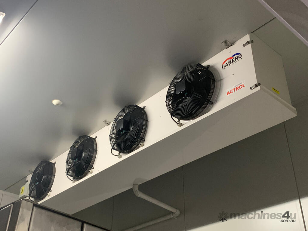 Cool Room structure for sale comprising panels, 2x standard doors, 1x sliding door, viewing windows, 2x Cabero 4 fan heat exchangers, lighting, etc.