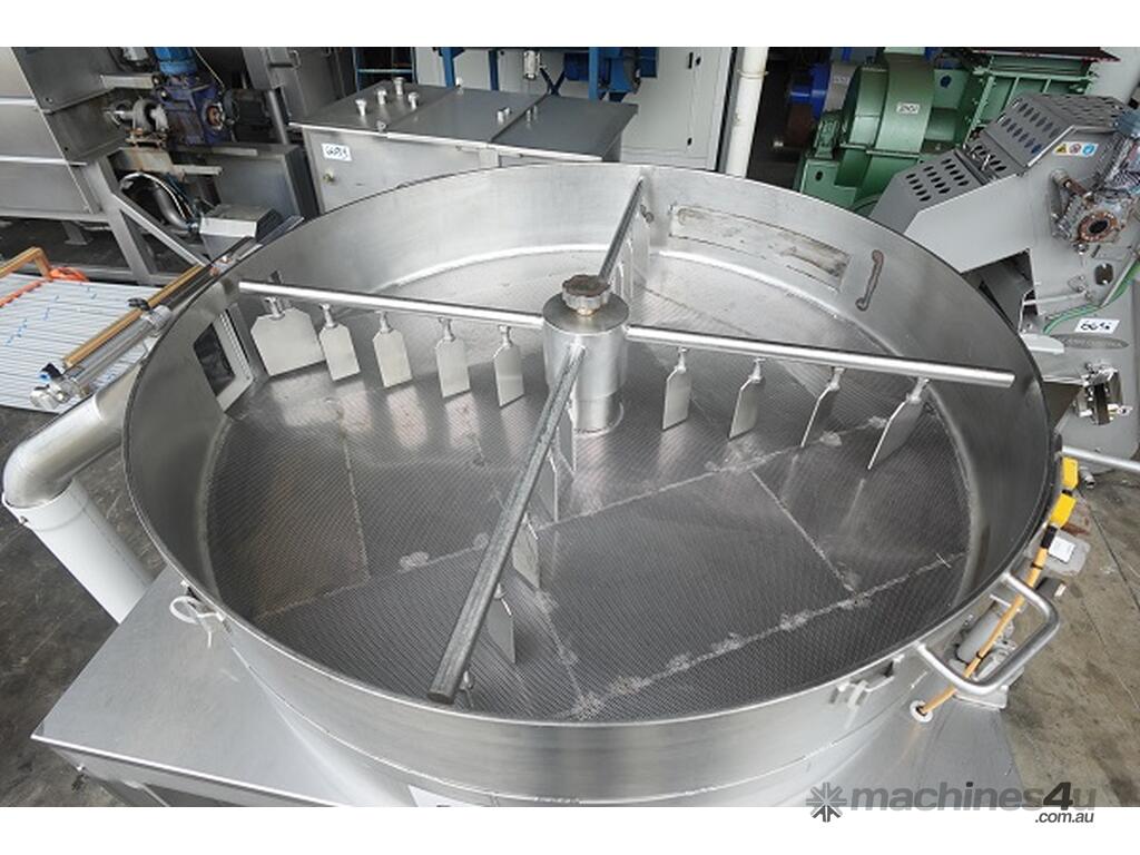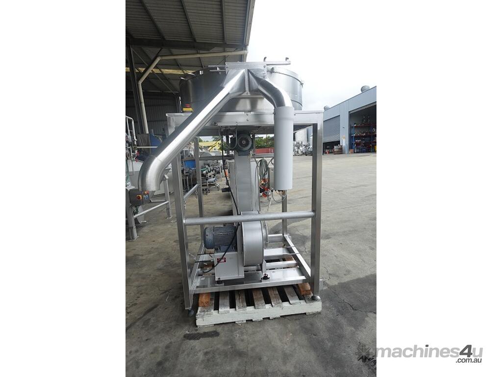 Table has an adjustable product aeration arm driven by a 0.55kW 6.3 RPM, 415 Volt SEW gear motor.