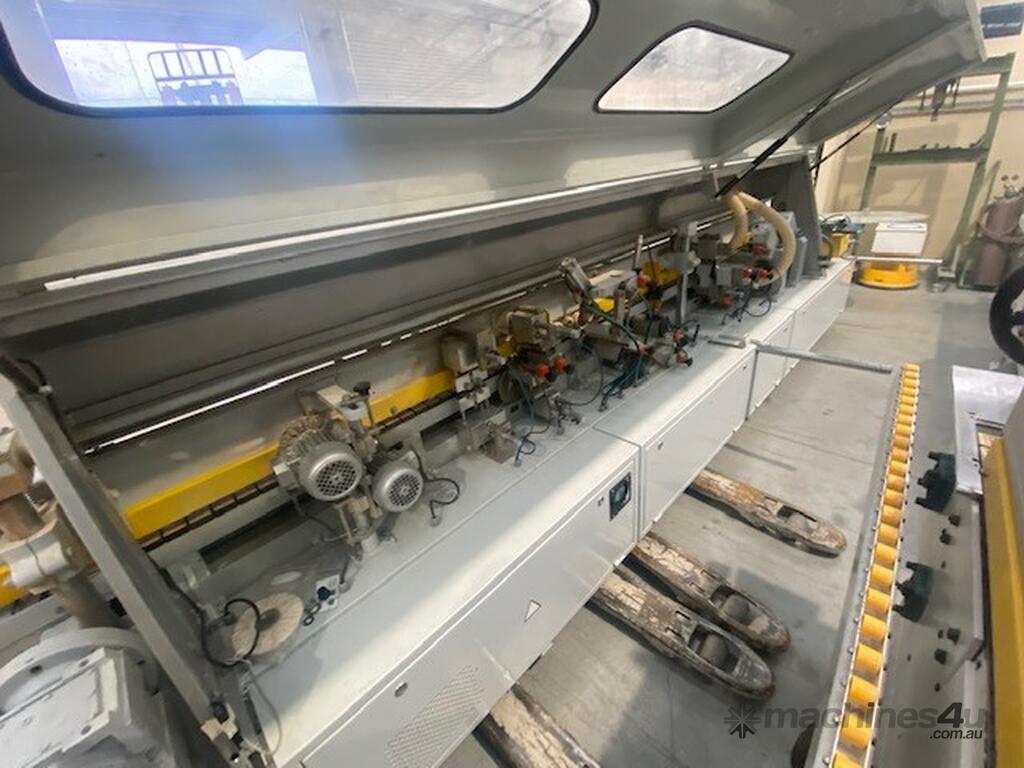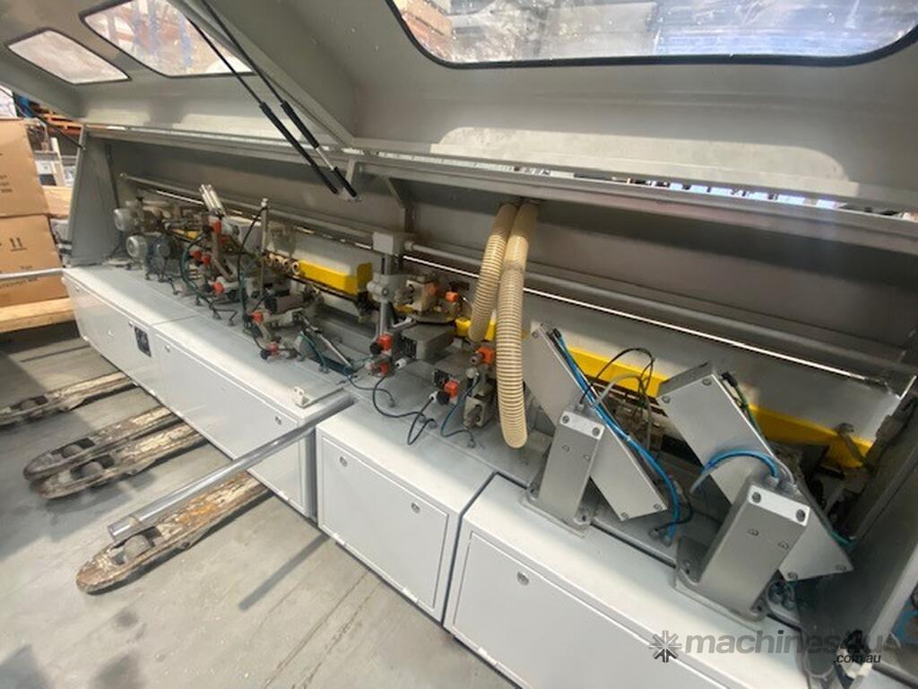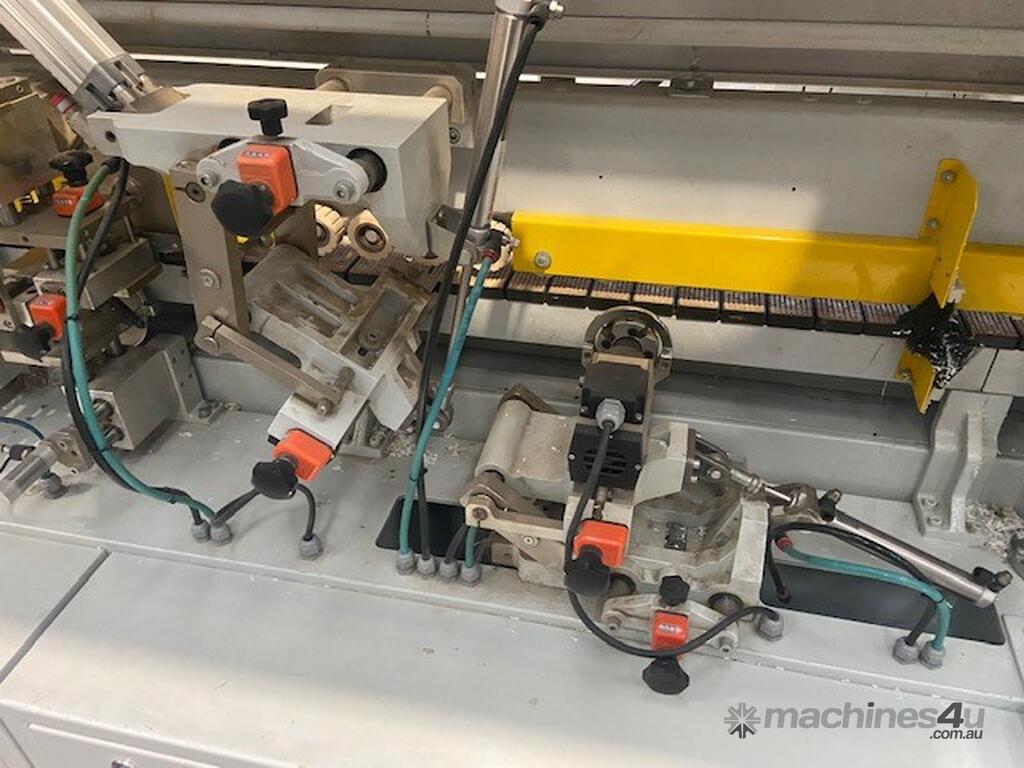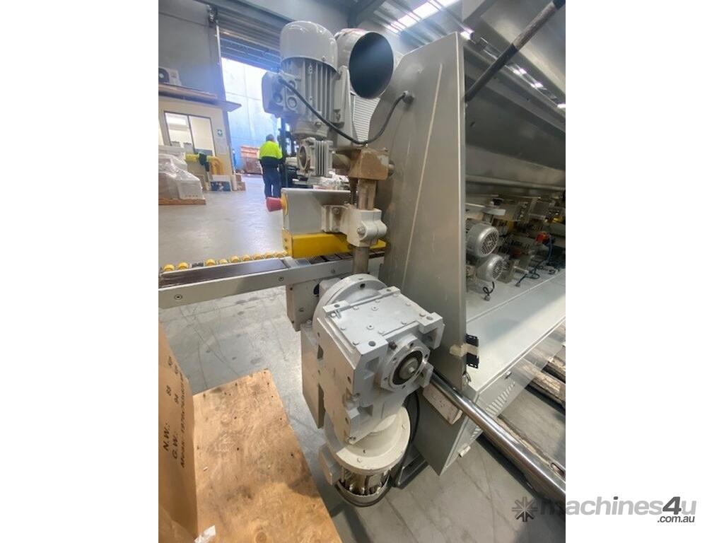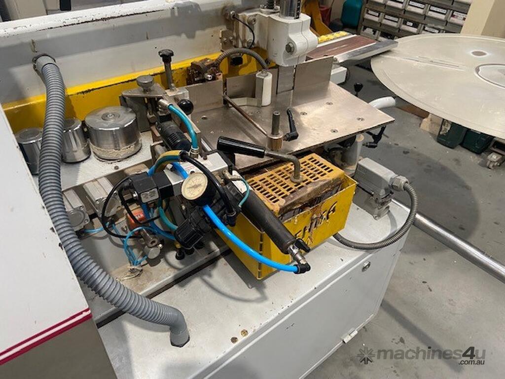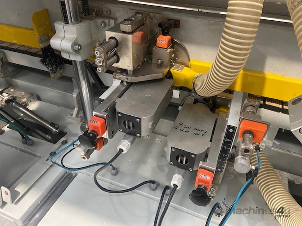 Solidly built European Edger with twin motor corner rounding station