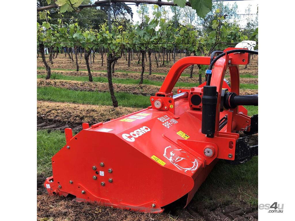 The European designed COSMO Bully BPF Series Mulchers are designed for tractors 60 to 100hp and have a tower that hydraulically side shifts. Like other COSMO Bully Mulchers, a series of height adjustable mulching rakes hold larger prunings (up to Ø 70mm) in the cutting chamber for mulching in vineyards and orchards. Additionally, the rear of the COSMO Bully BPF Series Mulcher deck can be opened to top pasture or when the operator needs to clear the chamber. This function is beneficial when cutting high volumes of material allowing it to be discharged ef ciently, without sacrificing speed. Complete with a double skinned deck, side shift, a height adjustable rear roller and hammer blades, this mulcher will produce a high quality finish.