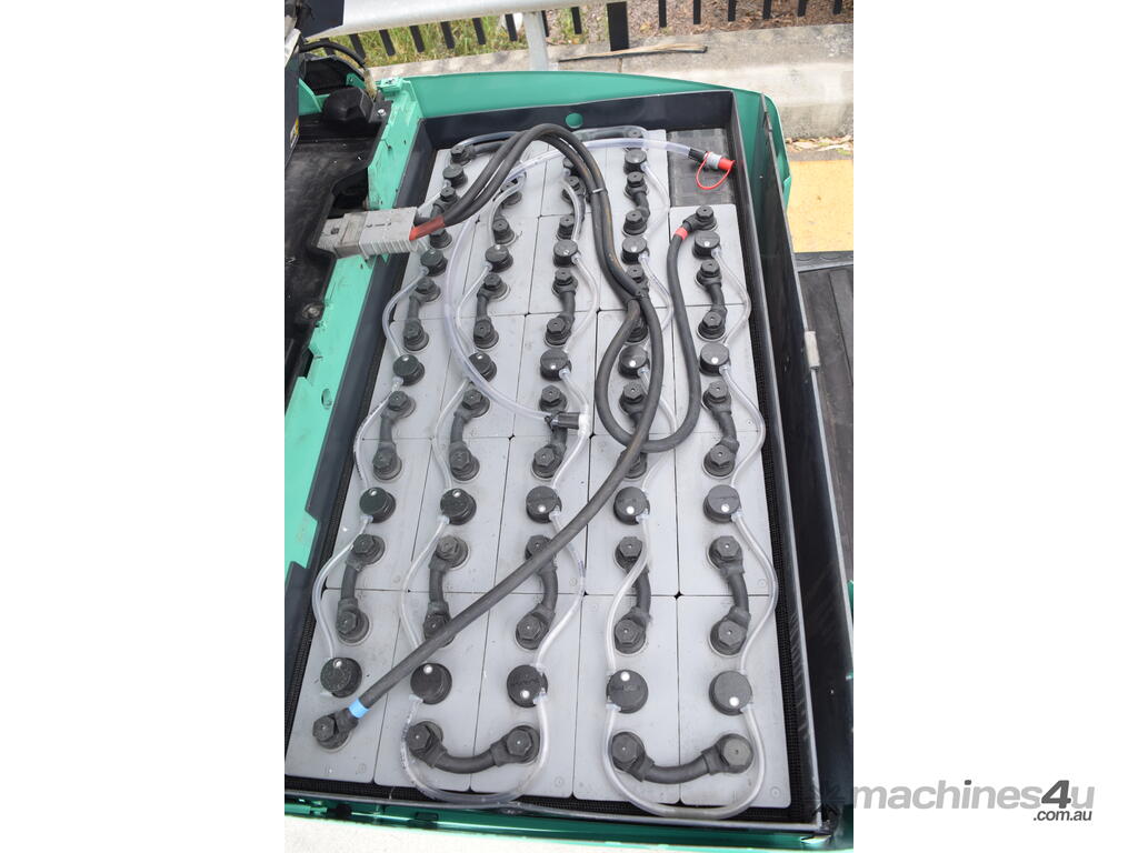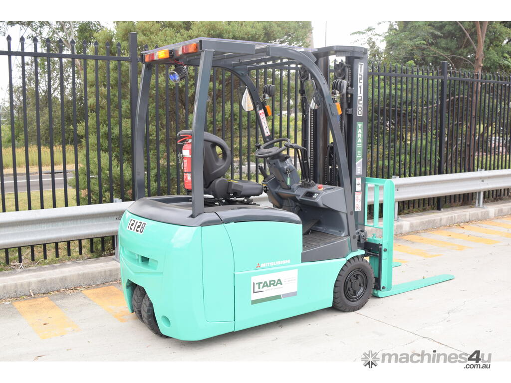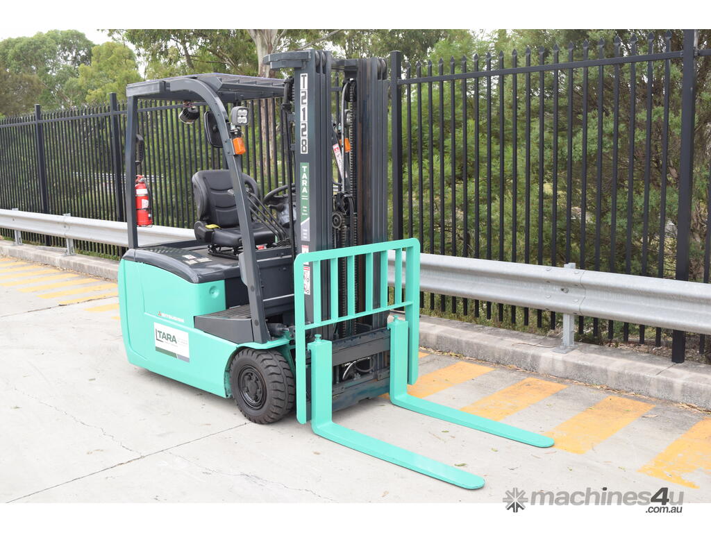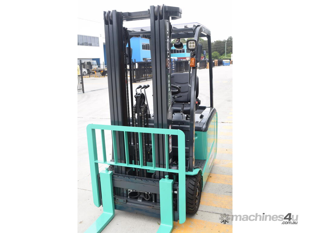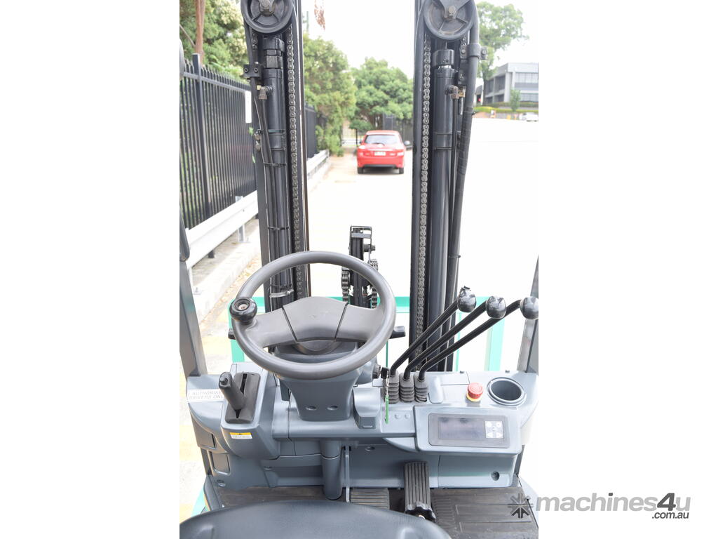Refurbished Mitsubishi 3-wheel Electric Counter Balance Forklift with 3 stage container mast.