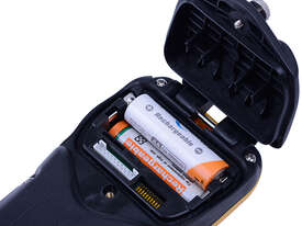 Powered by two AA batteries for up to 100+ hours of operation. Optional rechargeable battery packs and chargers available.