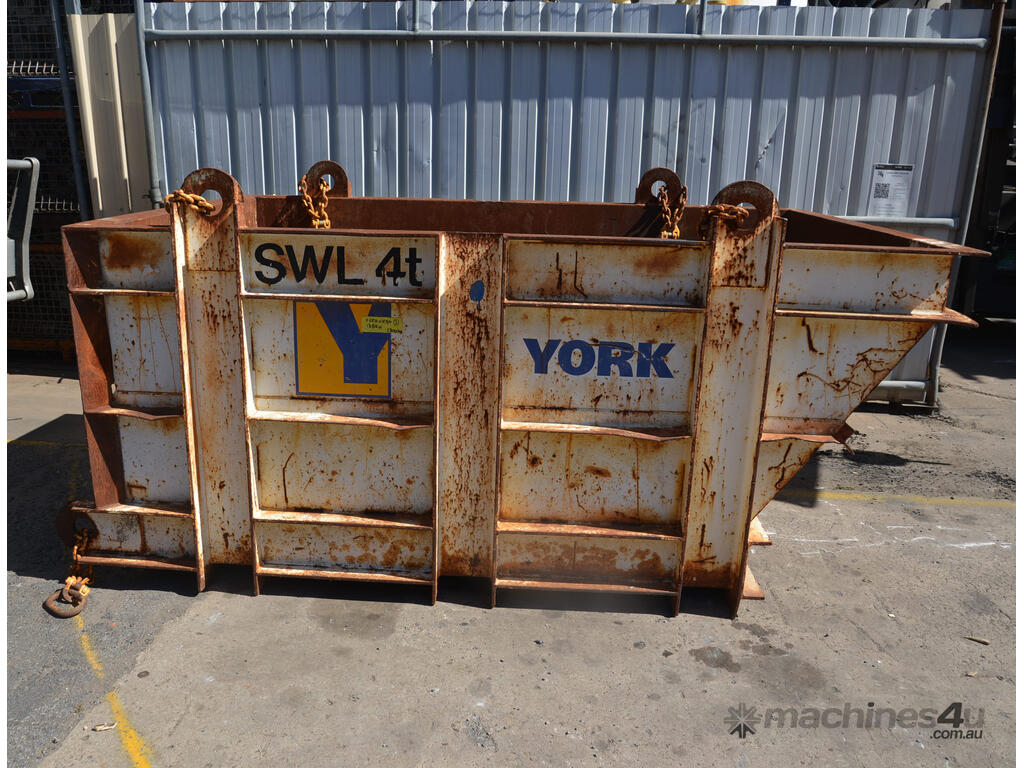 Crane lift tippable tip tipping waste bin construction skip forkliftable SWL 4t
