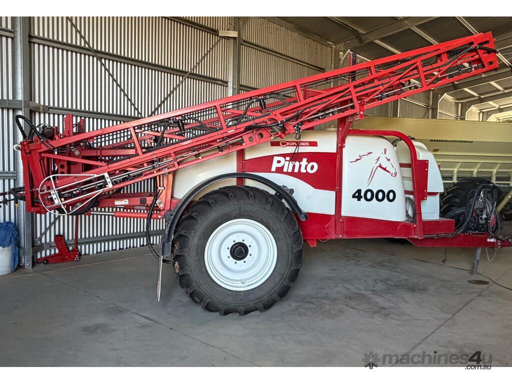 The Croplands Pinto 4000 Series 2 is a robust trailed broadacre sprayer known for its durability and simple operation, featuring a 4000-litre polyethylene tank and fully hydraulic boom options. It is manufactured in South Australia and designed for the tough Australian conditions.