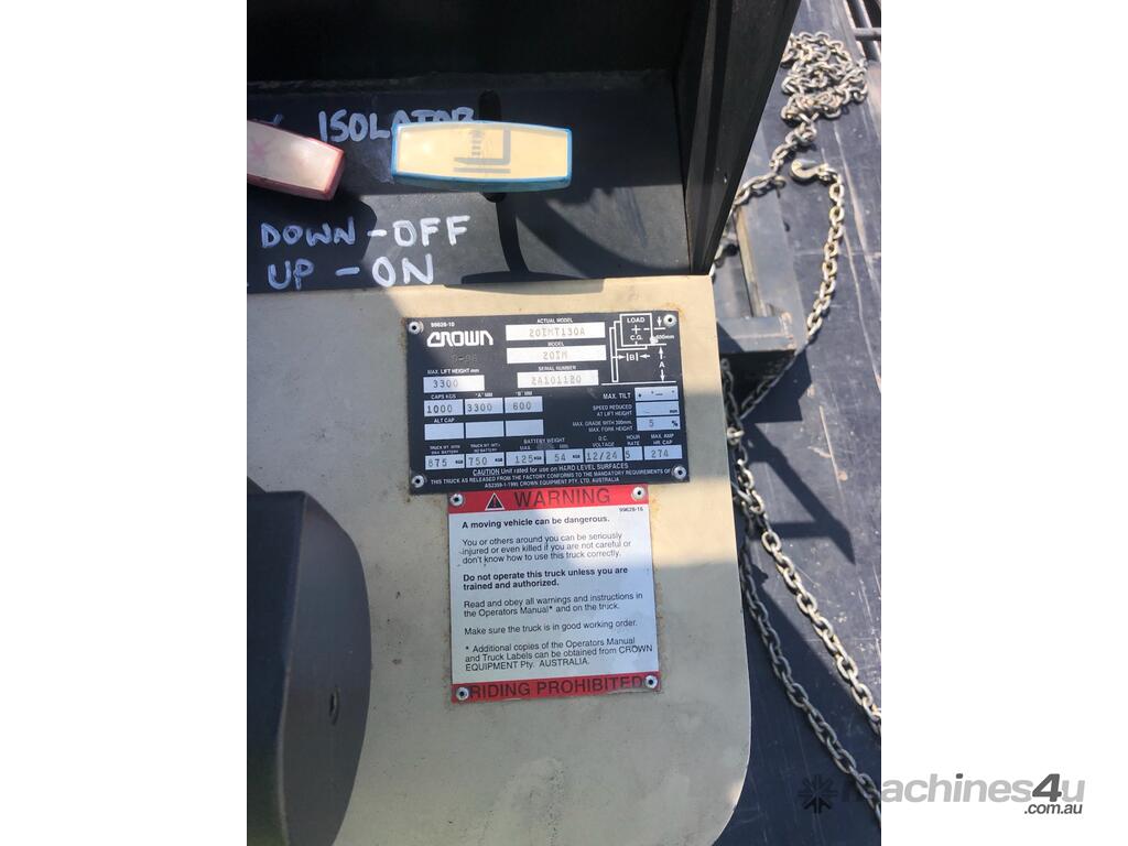 For sale: Crown 20IMT130A electric walk-behind stacker, ideal for warehouses, workshops, and small logistics operations.
