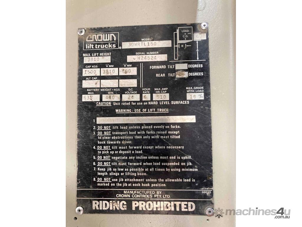 Crown 30WRTL150 3.8m Walkie Reach Updated Battery 1 Yr Warranty All Works :      $4,590 AUD($5,049 Inc. GST)
