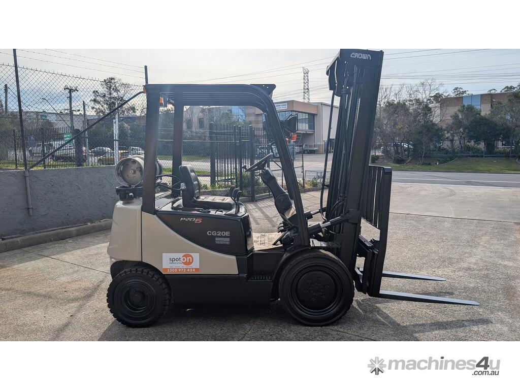 Heavy-duty Crown LPG counterbalance forklift built for applications that require lift height, durability, and proven reliability. This 2012 CG20E-5 has been serviced, is in good working order, and is ready for immediate use.
