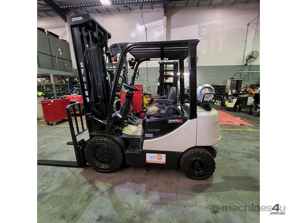 Heavy-duty Crown LPG forklift suited to applications where lift height, stability, and simple mechanical reliability are required. This CG25P-5 is a proven industrial platform offering strong performance at height.