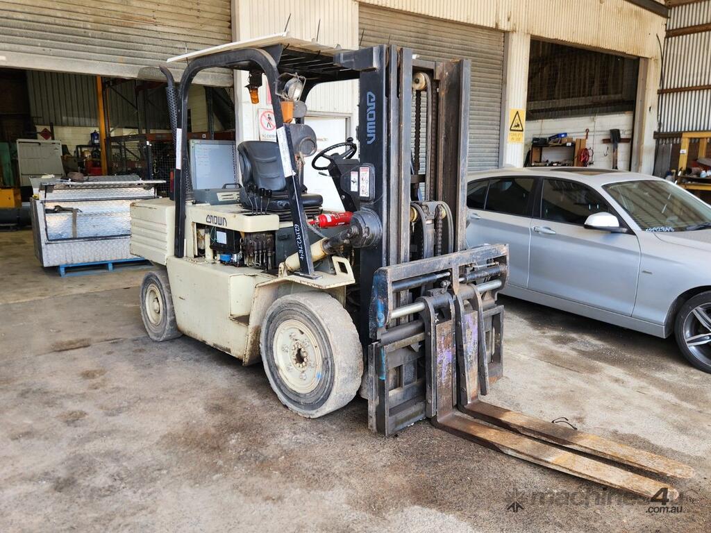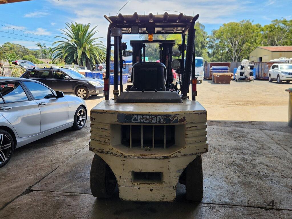 No C/P,Crown,Counter Balance Forklift,4 Cyl,Diesel,Direct Injection,Odometer not visible,7155 (Hrs. Showing on Hour meter),Colour: Beige,Unregistered,Serial No: 21-01440,Sold with No Plates