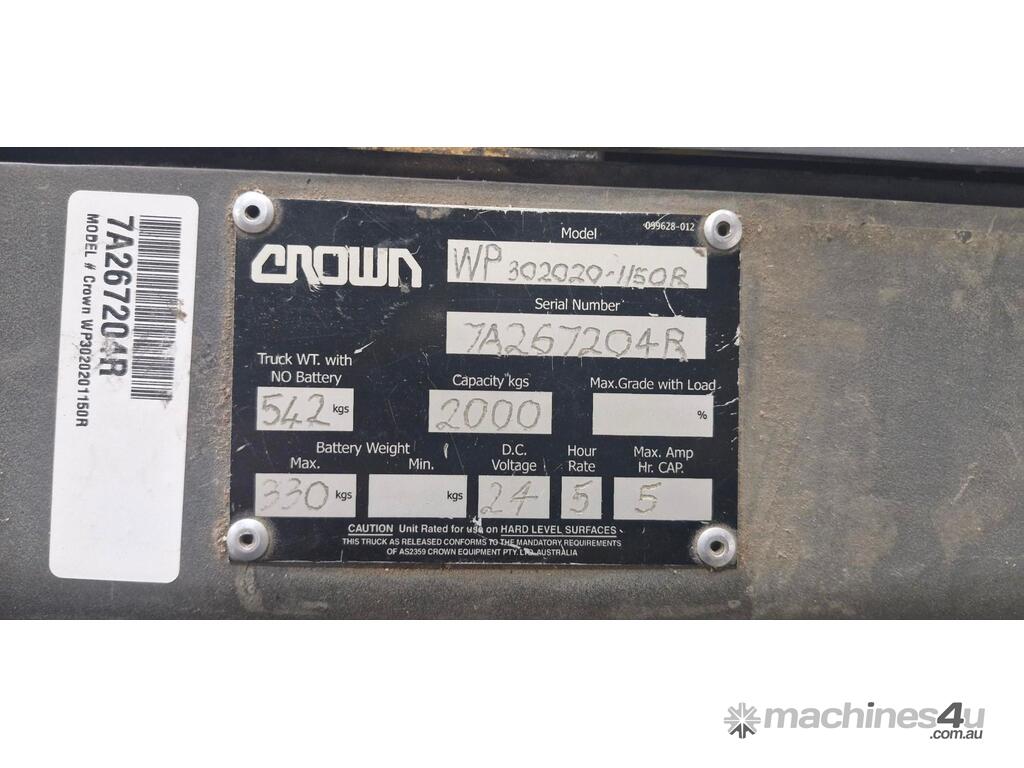 Crown Electric Pallet Jack,Capacity: 2000kg,Serial No: 7A267204R,Incident Type: Not Applicable
