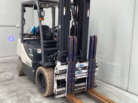 Unit comes with side shift and standard forks. Fork positioners can be added for extra
