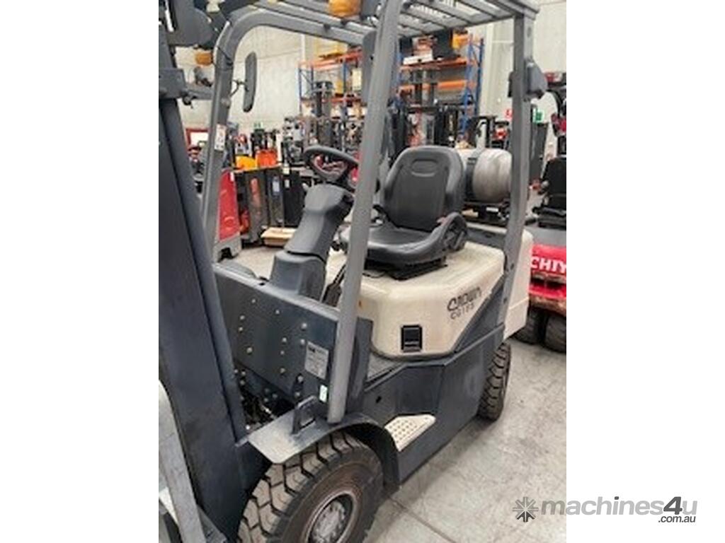 Crown gas powered forklift with container entry mast, unit has low hours and has been fully workshop tested with all repairs completed including brand new puncture proof tyres all around at our cost of $1500 + GST all repairs have been completed including serviced and tuned this unit is ready to go straight to work will be sold with 6 months warranty can be driven and inspected at our premises in Dandenong South