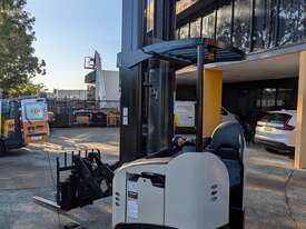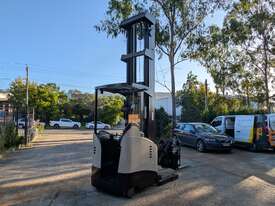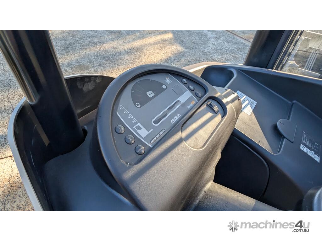 This is a Crown RD5795-30. 3,000kg capacity, 10.1m lift, double deep reach, sideshift, and a camera system so your operator can actually see what they're doing at height. Crown's RD series runs. Ask anyone who's owned one.