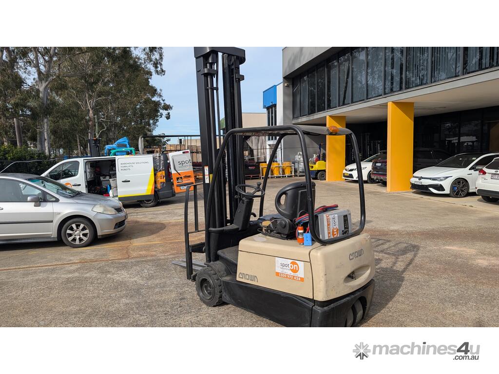 High-quality Crown 3-wheel electric forklift designed for tight warehouse environments and high-racking applications. This SC3018 offers excellent manoeuvrability, strong lift height, and proven Crown reliability.