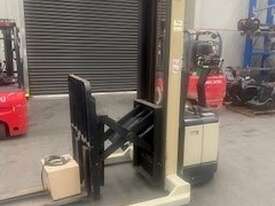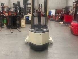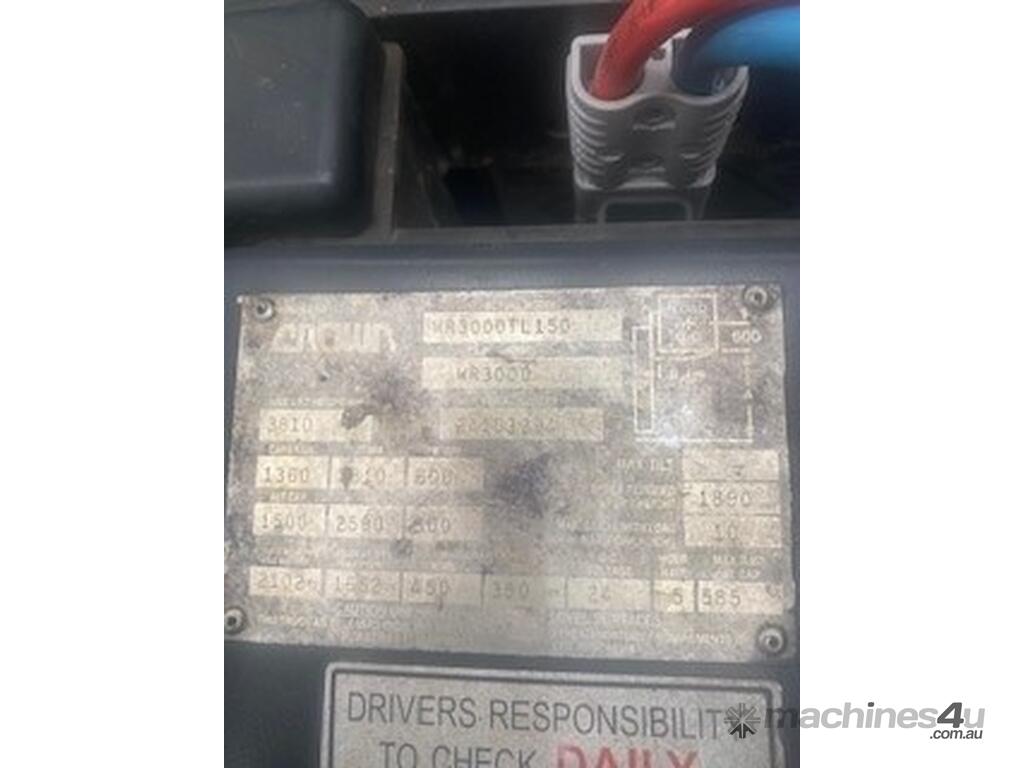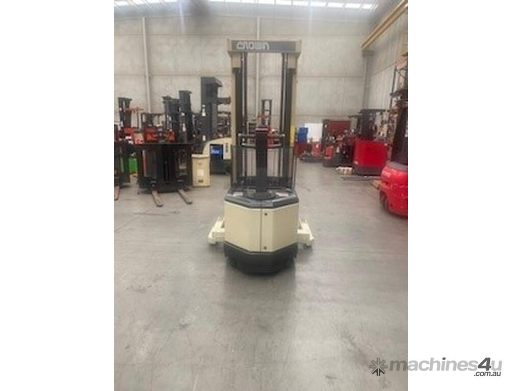Walkie reach heavy duty Crown this unit has been through our workshop and has a brand-new traction battery fitted with new single point filling system and filling gun NEW BATTERY has 5 years warranty our new battery cost was $2800 + GST, unit has also had new wheels fitted load wheels and drive wheels this unit has had all necessary repairs completed workshop tested and serviced paint has been touched up not a complete re spray to keep pricing low. This heavy-duty walkie reach does not need a license to operate and will lift 1500KG's reach out and has a 3810mm 2 stage high visibility mast, unit can unload 2 pallets from the one side of a tray truck