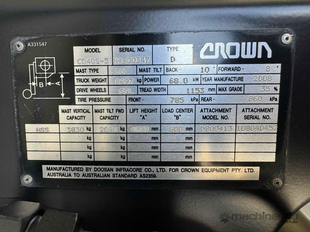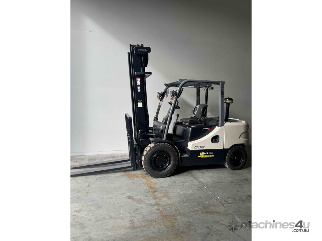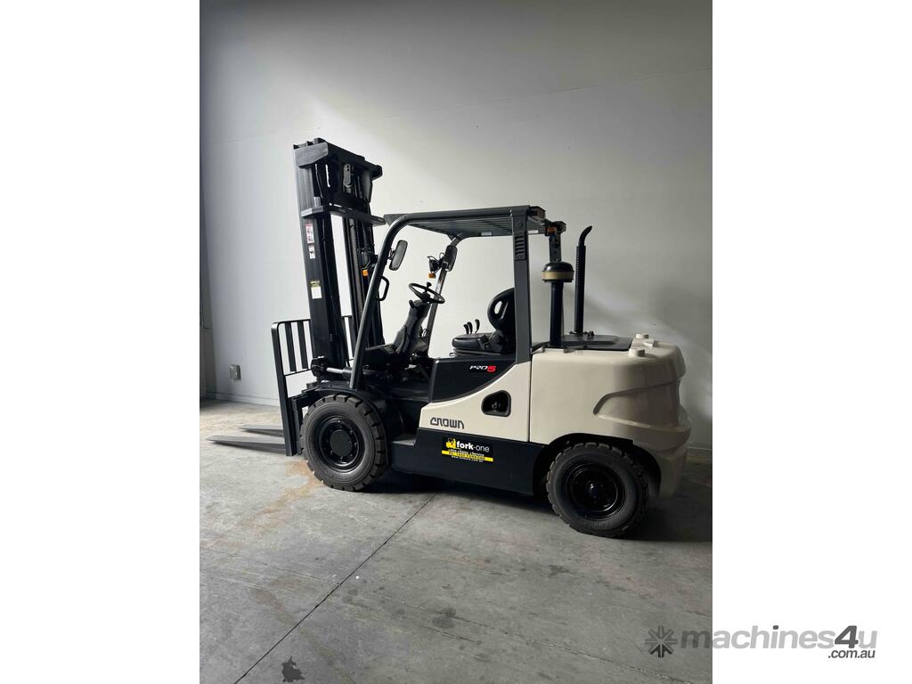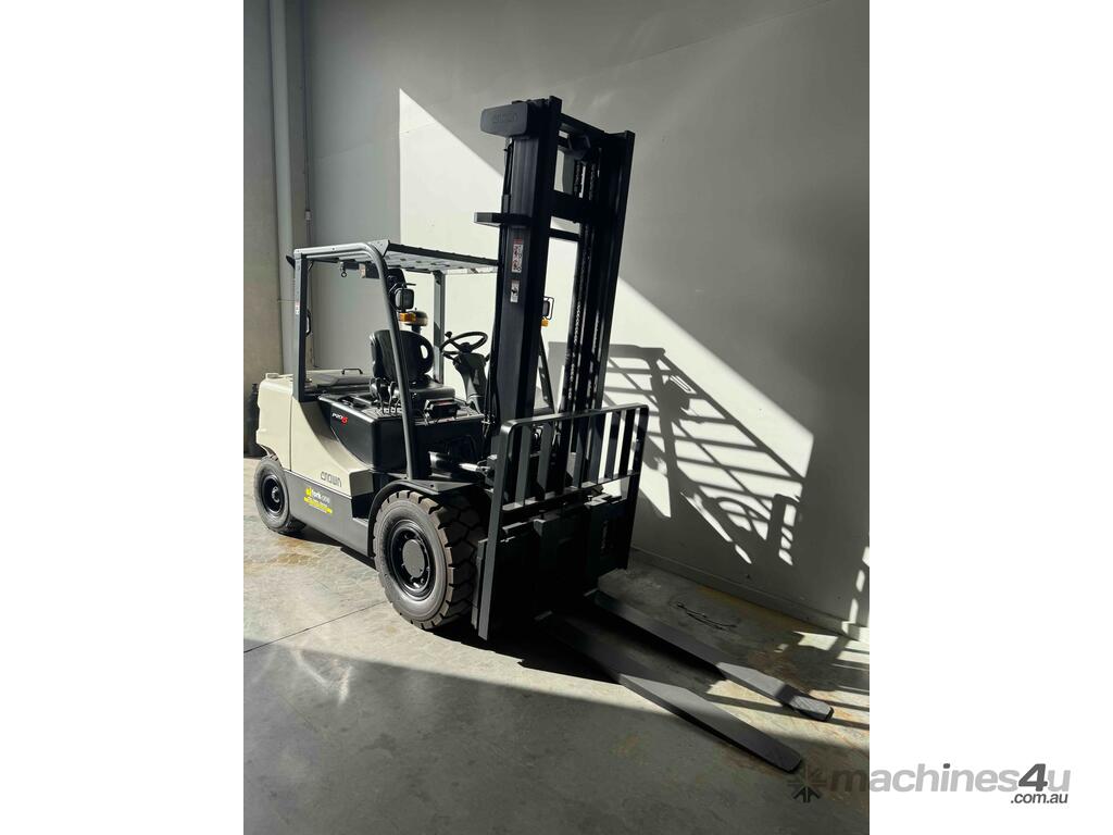 Crown diesel 4.0 tonne forklift with pnuematic tyres,sideshift and 4metre clearview mast.This unit has approx 10000 hours has been serviced every 250 hours since new.This forklift has only had 1 owner,very powerful and in excellent condition.