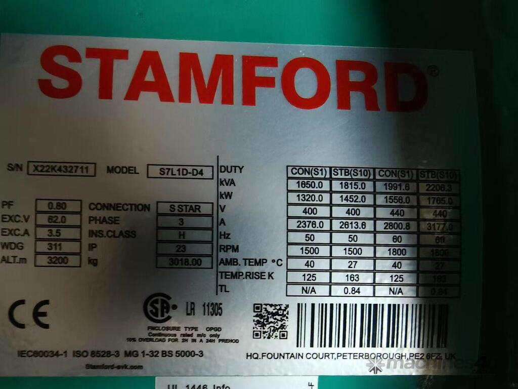 Cummins KTA 38 G2A 12 Cylinder 1500 RPM Industrial Diesel Gen Drive direct close Coupled to a Stamford Brushless A/C generator , Anti-Vibration Mounted on a Steel Channel base frame , supplied complete With 24VDC charging and Starting Systems , Deep Sea Digital Controls for engine protection and Auto / Manual Starting , 4 Pole Circuit Breaker . Machine Tested at full load , Newly Serviced . Fraction of New Price
