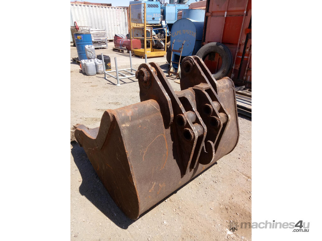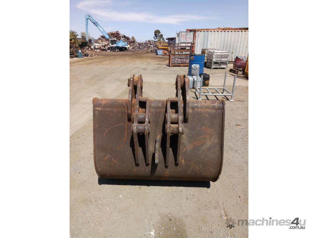 Custom batter bucket suitable for a range of heavy machinery applications. Constructed for durability, this unit includes 4 teeth and dual pin configurations. Please note: a small crack is present and will require repair.