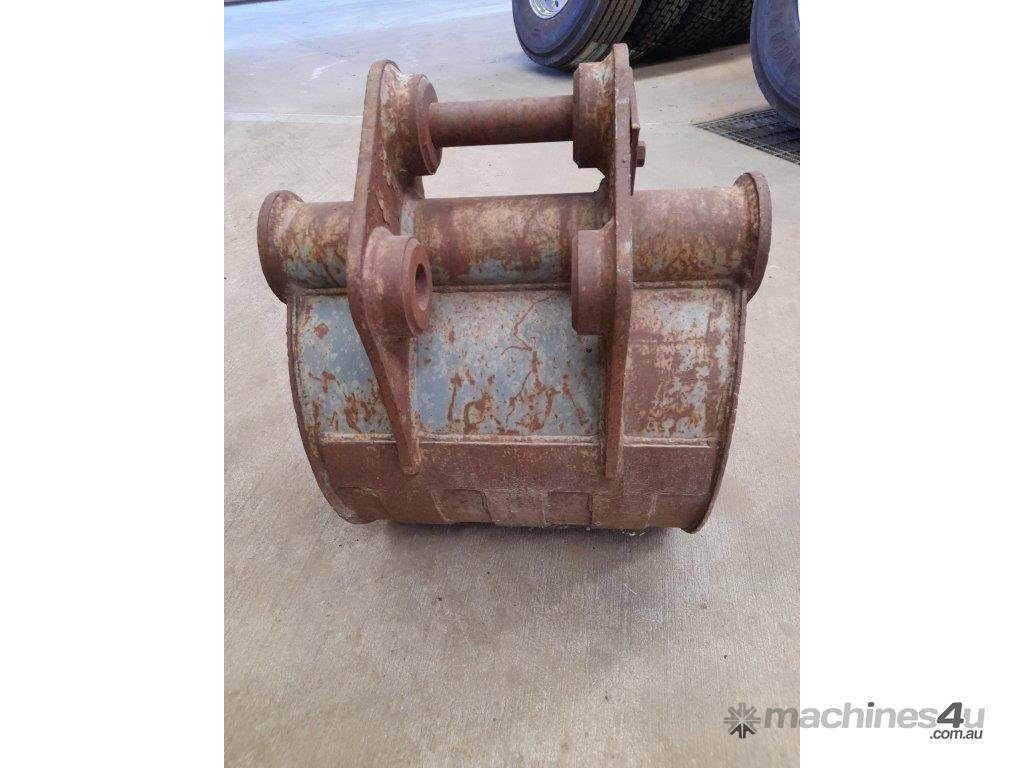 Heavy-duty custom 590mm trench bucket, ideal for precision digging applications. This unit features 4 durable teeth and is built to suit a range of small excavators with 40mm pins. It's in good condition and ready for work.