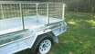 8x5 Tandem trailer 2 ton gvm Checker plate floor Checker plate sides 380 mm high Checker plate guards, steps and Front tailgate Mesh Ramp at the back with coil spring - 1500 mm high from trailer floor Side tie rails Rack....