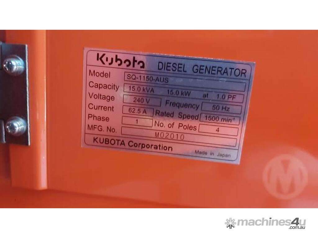 Engine Description: Kubota SQ1150AUS 15kva