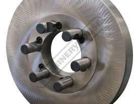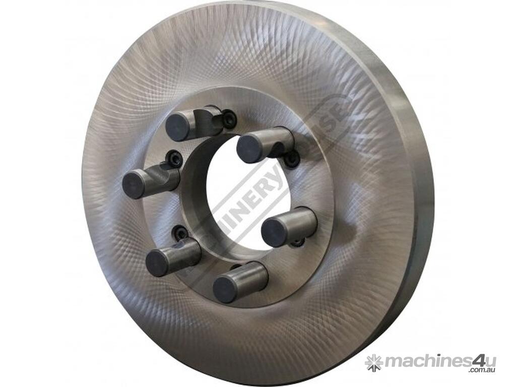 Cast iron back plate finished machined on one side to fit D1-5 spindle nose. The other face and outside diameter need to be machined to suit chuck size.