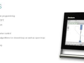 Its 15" high resolution colour TFT, with industrial grade multi touch screen technology, gives access to the proven Delem user-interface. It enables direct navigation between product programming and actual production. Functions are located where needed, offering optimised ergonomics throughout the entire application.