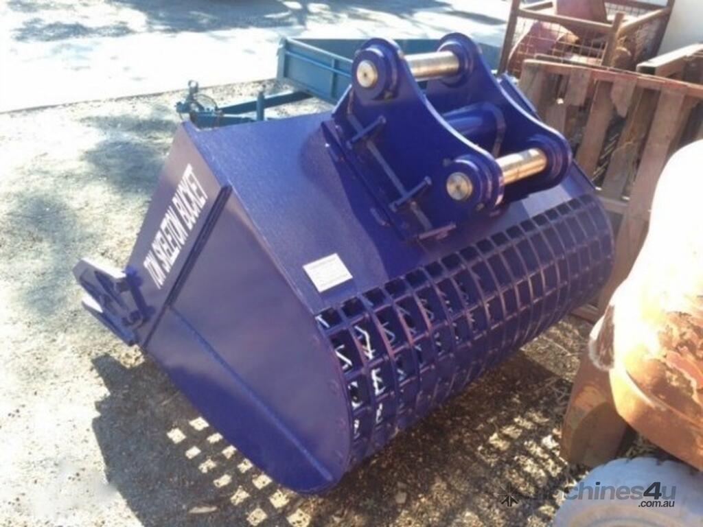 Description: DASSA Skeleton bucket 1640mm wide 920mm high Screen size 75mm. 6 replaceable teeth. This screen has a newly developed detachable ear head which is bolted to the bucket body.The ear assemblies are available separately to suit a wide range of excavator models.By changing the ear set the same bucket can be used on multiple machines.Made from the highest quality material.