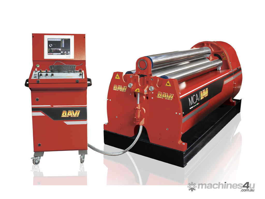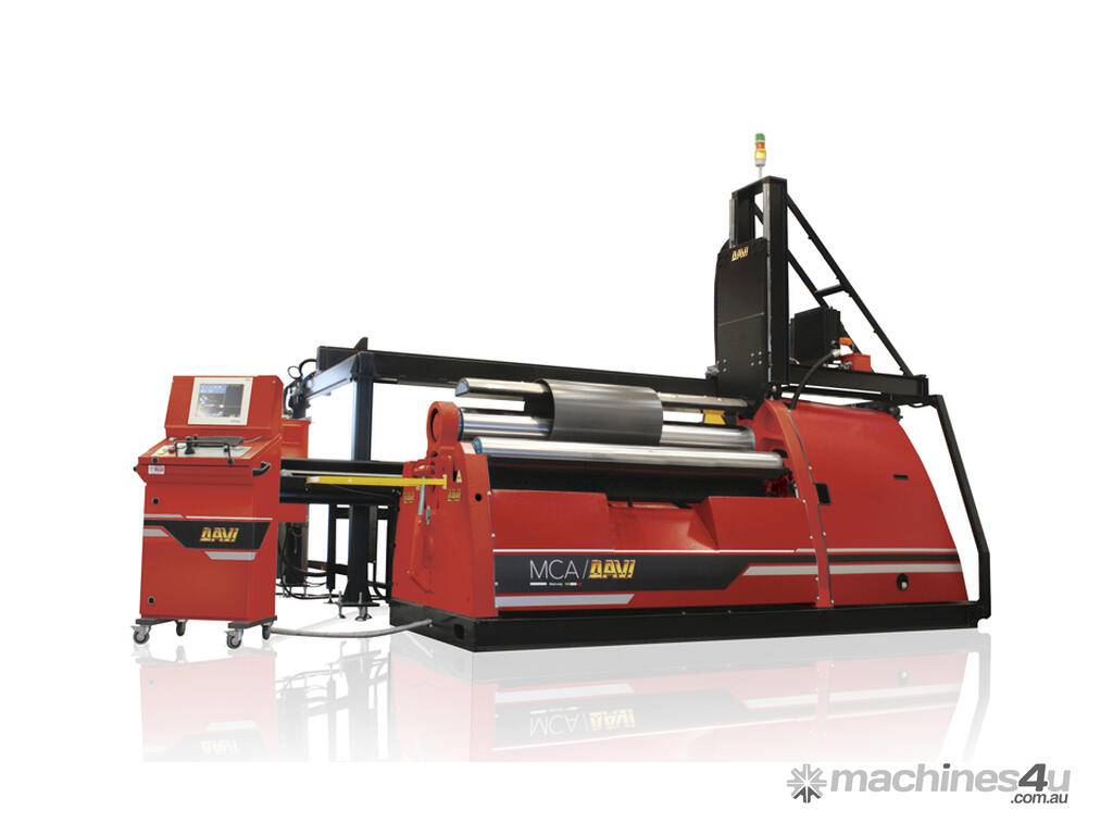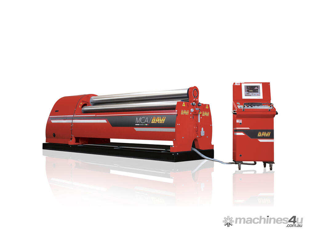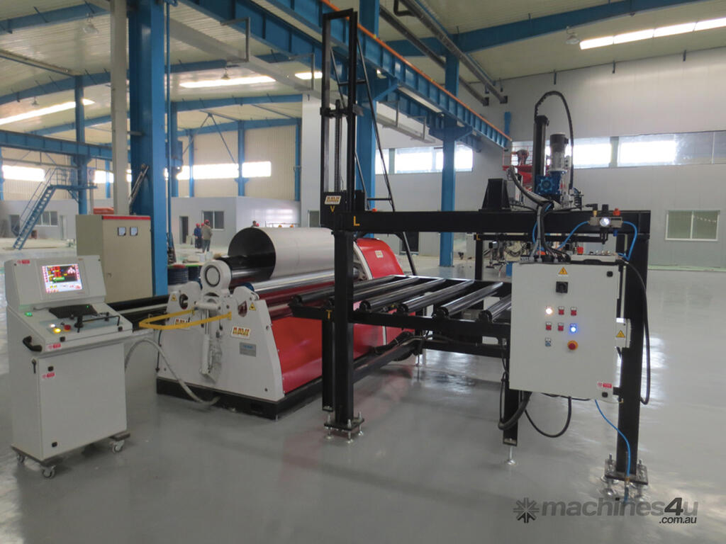 No need to pre-bend the two edges of the plate first, and then roll, as on any three roll. A cylinder can be rolled, including the pre-bending of both ends, feeding the plate forward through the rolls, one time only.