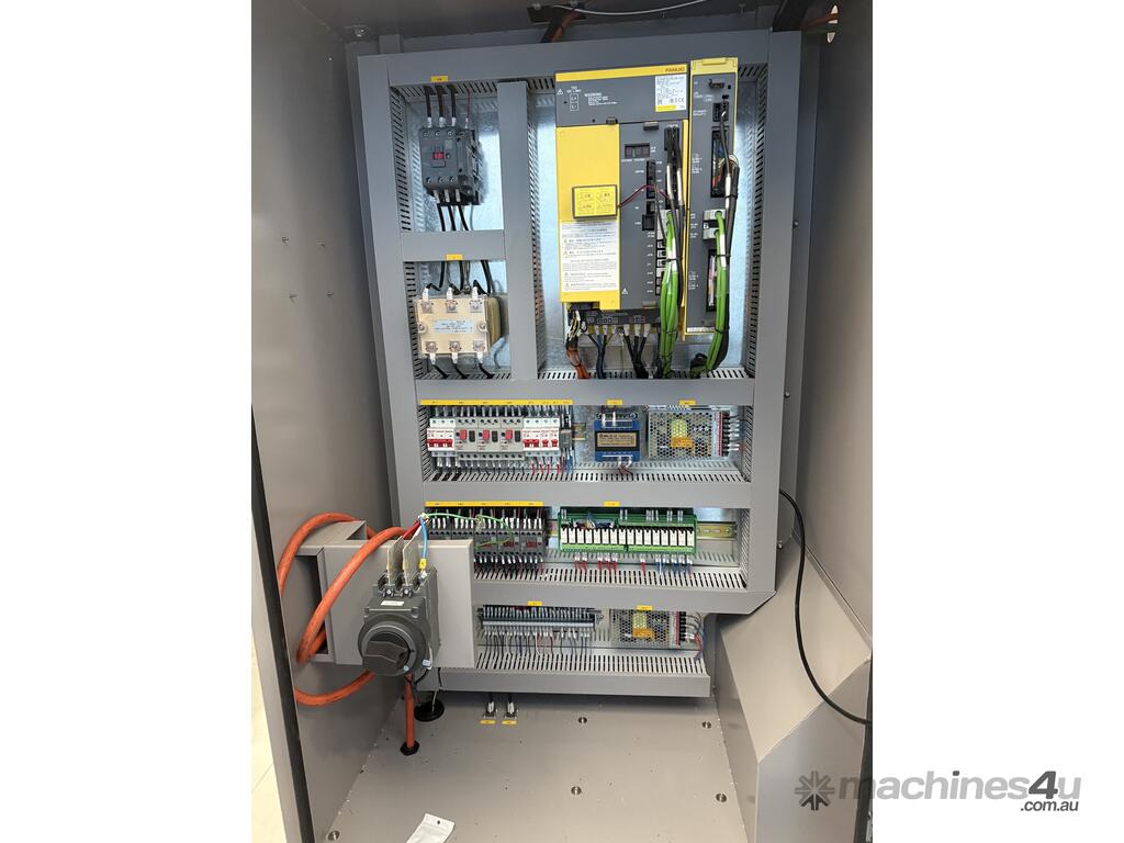 With Fanuc Oi Mf Plus controller, Chain Type Chip Conveyor, Coolant pump and Tank. (SAFEWAY VICE & TOOLING NOT INCLUDED)