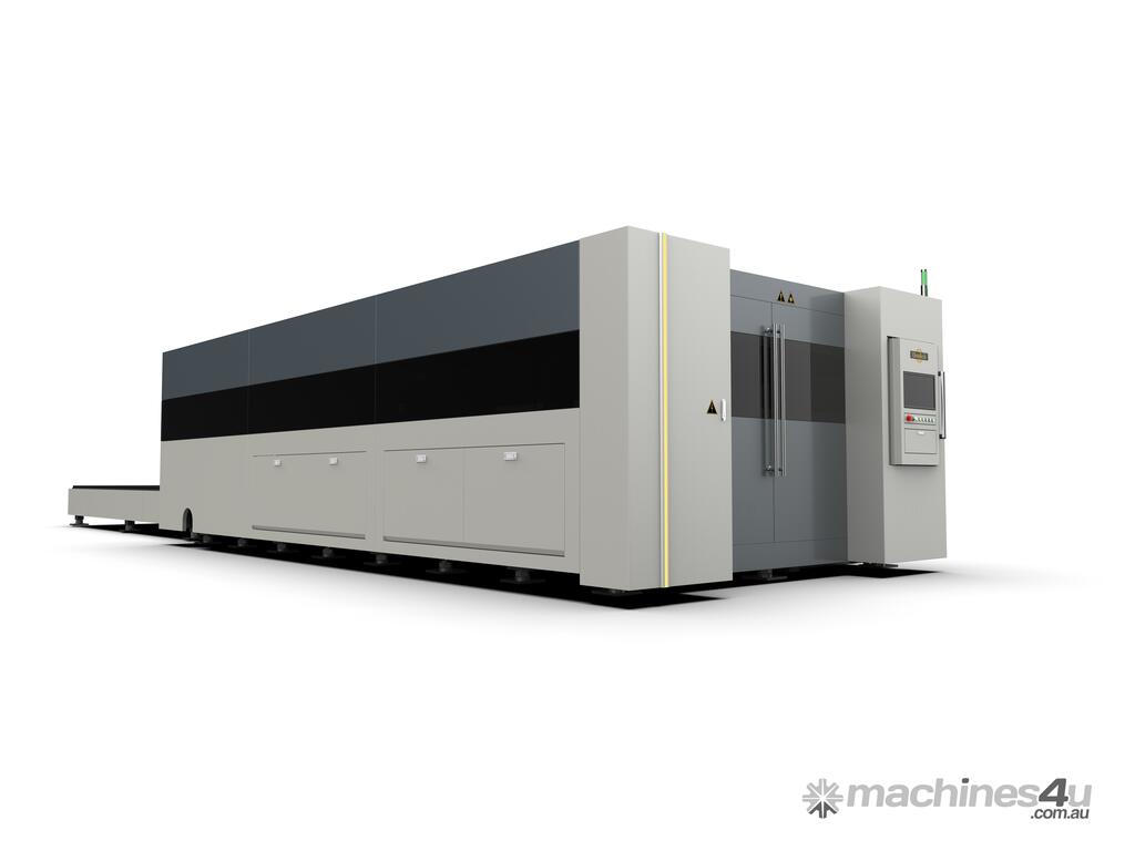 The machine can cut the sheets on two different height levels inside the machine, this allows the automatic shuttle table system to change very fast between tables since the tables do not need to make any vertical movement. The fully covered machine assures a perfectly eye-safe operation.