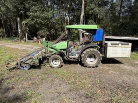 DEUTZ-FAHR AGROKID 35 TRACTOR, S/N: D05S354WT-10092, E/N: 113851, 742 HOURS SHOWING. FITTED WITH A MACADAMIA NUT HARVESTER. LOCATION: MOOLOOLAH VALLEY, QLD 4553. INSPECTION & COLLECTION: BY APPOINTMENT ONLY. ENQUIRIES: PETER VUICHOUD ON OR PETEREMERALDAUCTIONCENTRE