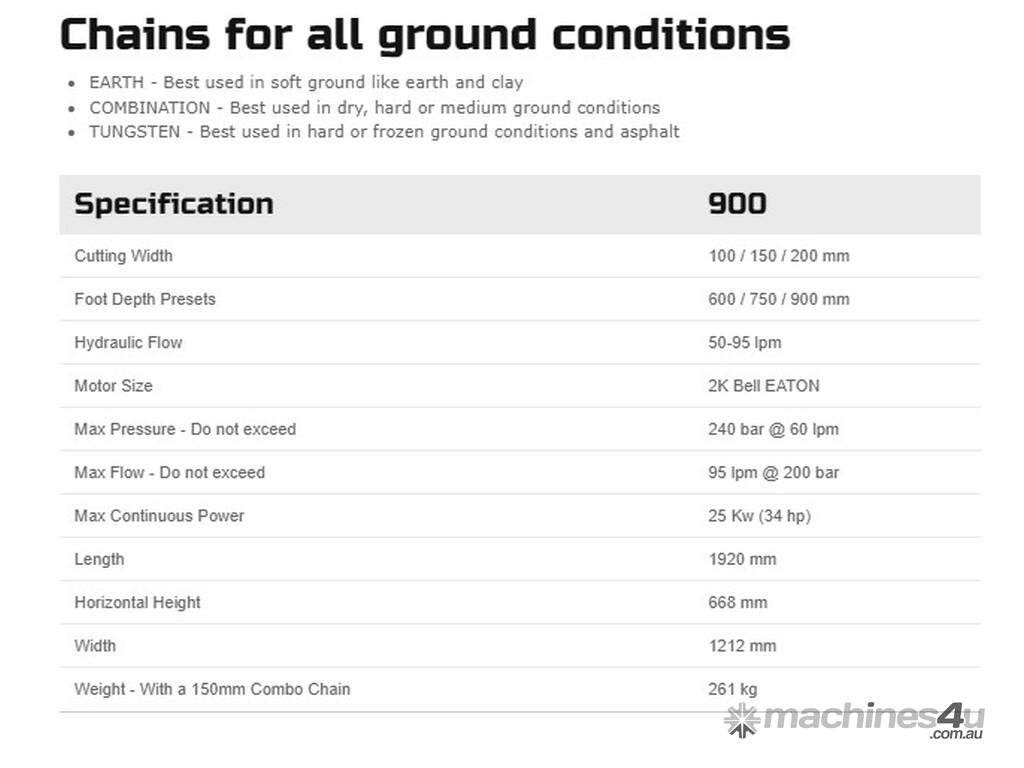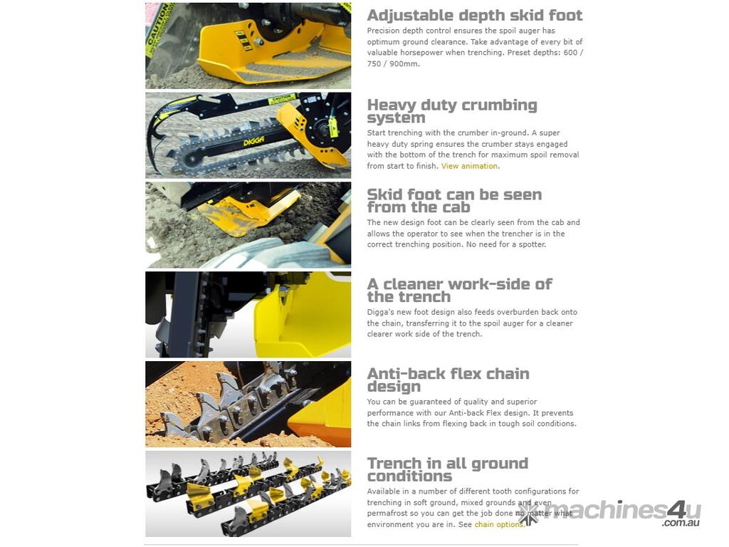 NEW DIGGA BIGFOOT TRENCHER 900 DIG, 150 WIDE, COMBINATION CHAIN, MULTI-FIT FRAME