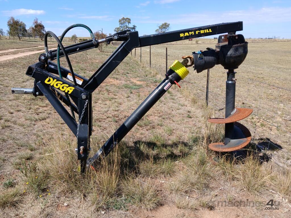 DIGGA RAMDRILL POST HOLE DIGGER , 3 POINT LINKAGE , PTO DRIVEN , 75 HP RD-000320 75 HP GEARBOX WITH FIXED BOOM HYDRAULIC RAM , HEAVY DUTY FULLY ADJUSTABLE FRAME , ADJUSTABLE BUILT IN STABILIZER LEGS FOR STRORING , COMES COMPLETE WITH AUGER 18/450 - 2". AUSTRALIAN MADE WITH MINIMAL USE AND NO LONGER NEEDED .