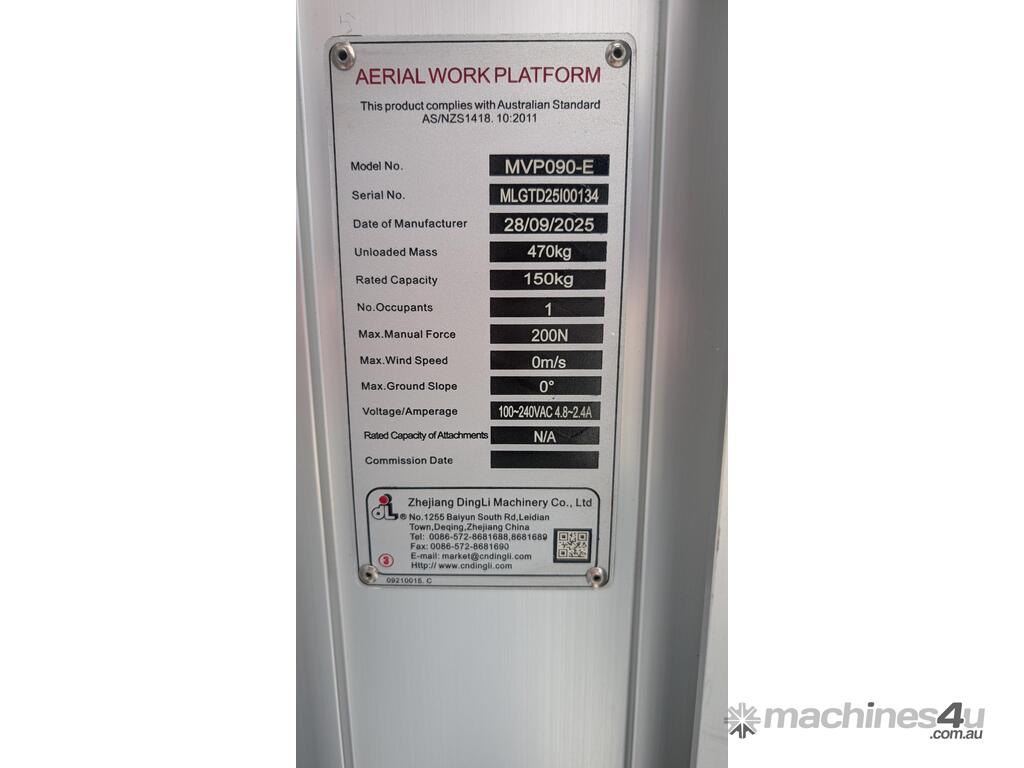DINGLI MVP090-E 9m Push Around Man Lift :      $7,000 AUD($7,700 Inc. GST)