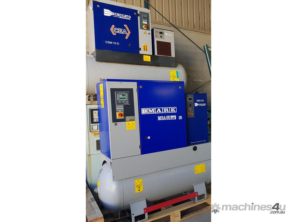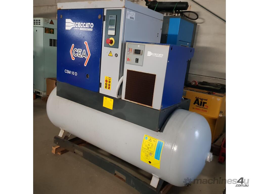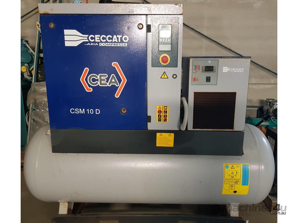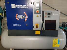 * CECCATO CSM 10 D 7.5kw 10hp 415v 8 BAR 3-IN-1 ROTARY SCREW COMPRESSOR MADE IN ITALY Year 2019 INCLUDING BUILT-IN REFRIGERATED AIR DRYER 240v MOUNTED ON 500 LITRE AIR RECEIVER TANK, ONLY 2,500 HOURS APPROX (TBC), POWER/DIGITAL CONTROLS TURN ON AND RUNS BUT INLET VALVE NOT PUMPING AIR, REDUCED TO ALLOW FOR REPAIRS