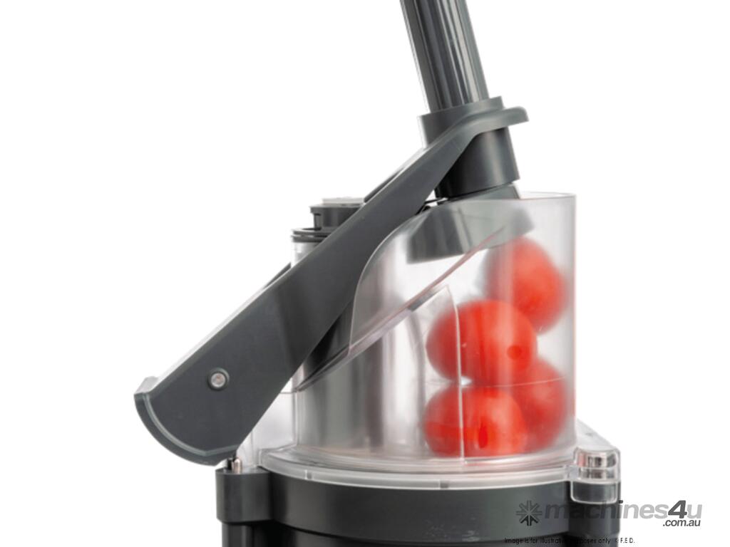 Equipped with half moon hopper (1.25L capacity) and 2 small round feed chutes: Ø 25mm and Ø 55mm, for precise slicing of long-shaped vegetables.