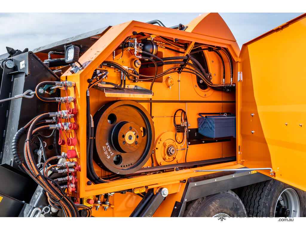 - Standard lowerable 7.5 m long rear conveyor (discharge height over 5 m) enables shortest set-up times and maximum accessibility and ease of maintenance to the flail drum, tools or rear basket