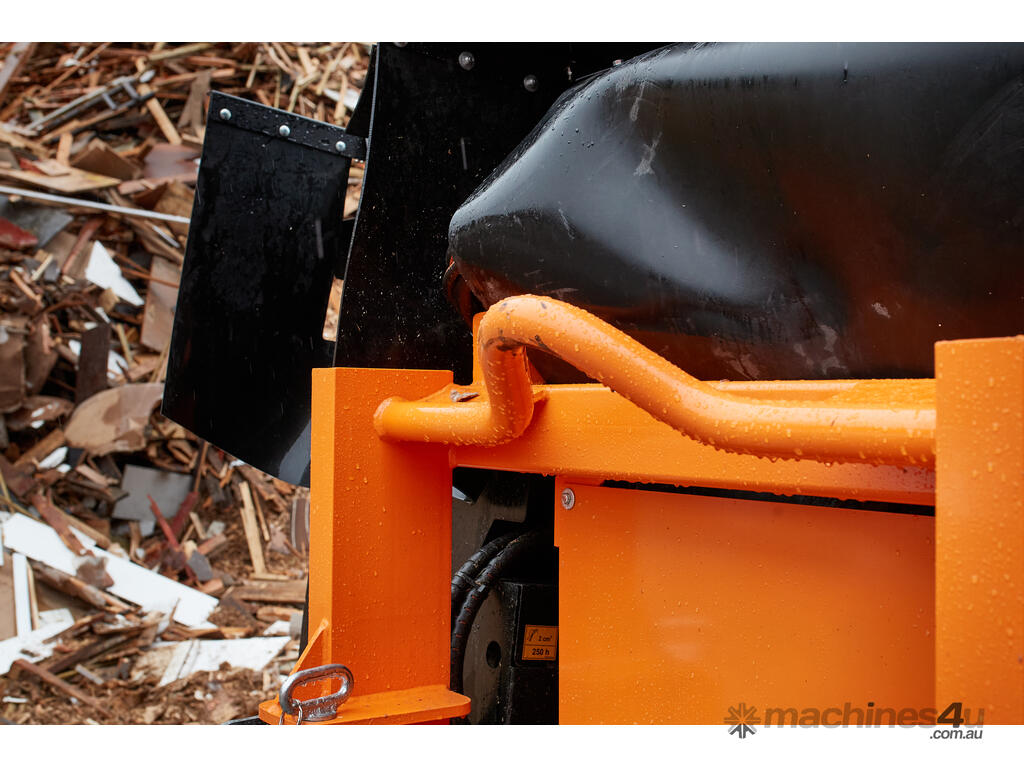 • Integrated, pivoting return line enables automatic recirculation of oversize material for re-shredding