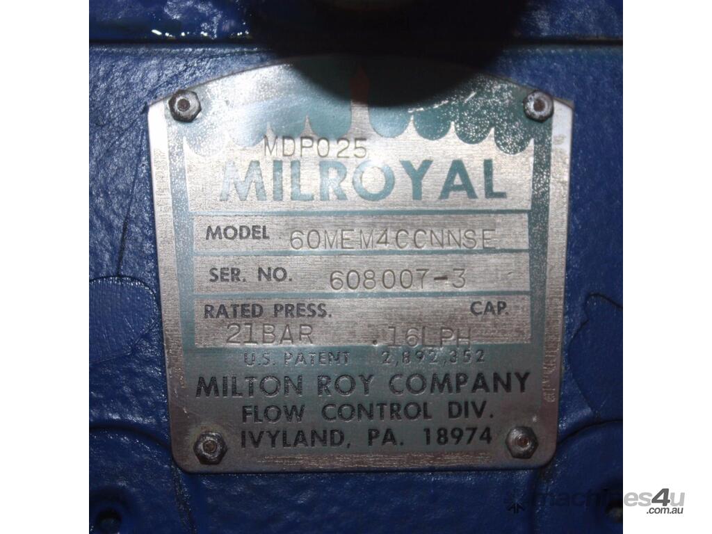 MILROYAL DOSING PUMP MODEL 60MEM4CCNNSE 21 BAR PRESSURE 16L/hr